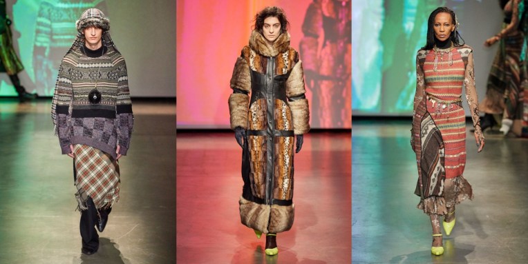 Marine Serre predicts the future. Last season, the sight of masked models might have felt sligtly too dark and painfully dystopian. Today, the threat of corona virus paralyses Europe, and people go crazy for masks. For autumn-winter 2020, Serre also sent out a number of “protection-wear” looks, but this time, some rays of bright future are seen on the horizon. “It’s quite stormy right now,” she said, “yet we have to see a future in that. It’s about finding ourselves there—understanding it and embracing it.” The designer tumbled deep down into the futurist wormhole, exploring fashion on a distant future planet. Her every-age-imaginable model cast, even feauturing the models’ actual kids, underscored that it’s about more than her own generation: we are really all in this together. There was a series of sandy denim pieces with a distressed scorched effect, allowing some new kind of warped beauty to emerge; their hue also riffed back to Frank Herbert’s “Dune”, which Serre quoted on her invitation, inspired, she said, by its depiction of new communities emerging in a radically different world. Much of the collection was about perfecting existing silhouettes and focusing on Serre’s commitment to upcycling, which, she said, now accounts for fifty percent of her business (other brands, take notes!). The weaving of past, present and future together was there all the time: you could see it in the hourglass shape of a trio of collaged houndstooth coats for any gender; intricately constructed outerwear conjured out of leather and fake fur bedspreads; a passage of looks utilizing white lace trim tablecloths; the jewellery was made from pre-used stuff like vintage rings. Serre’s collection was a powerful celebration of what could come out of today’s state of the world.