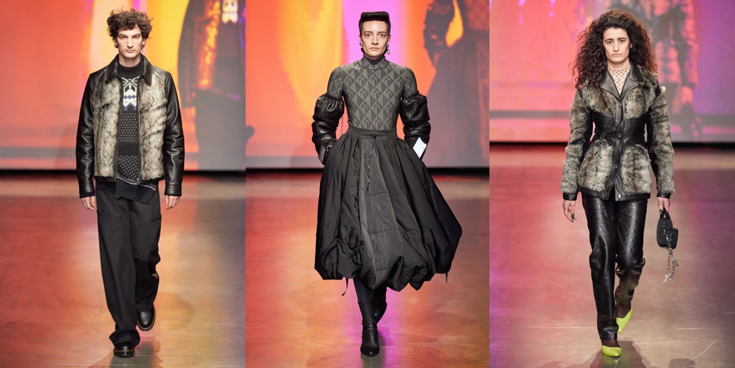 Marine Serre predicts the future. Last season, the sight of masked models might have felt sligtly too dark and painfully dystopian. Today, the threat of corona virus paralyses Europe, and people go crazy for masks. For autumn-winter 2020, Serre also sent out a number of “protection-wear” looks, but this time, some rays of bright future are seen on the horizon. “It’s quite stormy right now,” she said, “yet we have to see a future in that. It’s about finding ourselves there—understanding it and embracing it.” The designer tumbled deep down into the futurist wormhole, exploring fashion on a distant future planet. Her every-age-imaginable model cast, even feauturing the models’ actual kids, underscored that it’s about more than her own generation: we are really all in this together. There was a series of sandy denim pieces with a distressed scorched effect, allowing some new kind of warped beauty to emerge; their hue also riffed back to Frank Herbert’s “Dune”, which Serre quoted on her invitation, inspired, she said, by its depiction of new communities emerging in a radically different world. Much of the collection was about perfecting existing silhouettes and focusing on Serre’s commitment to upcycling, which, she said, now accounts for fifty percent of her business (other brands, take notes!). The weaving of past, present and future together was there all the time: you could see it in the hourglass shape of a trio of collaged houndstooth coats for any gender; intricately constructed outerwear conjured out of leather and fake fur bedspreads; a passage of looks utilizing white lace trim tablecloths; the jewellery was made from pre-used stuff like vintage rings. Serre’s collection was a powerful celebration of what could come out of today’s state of the world.