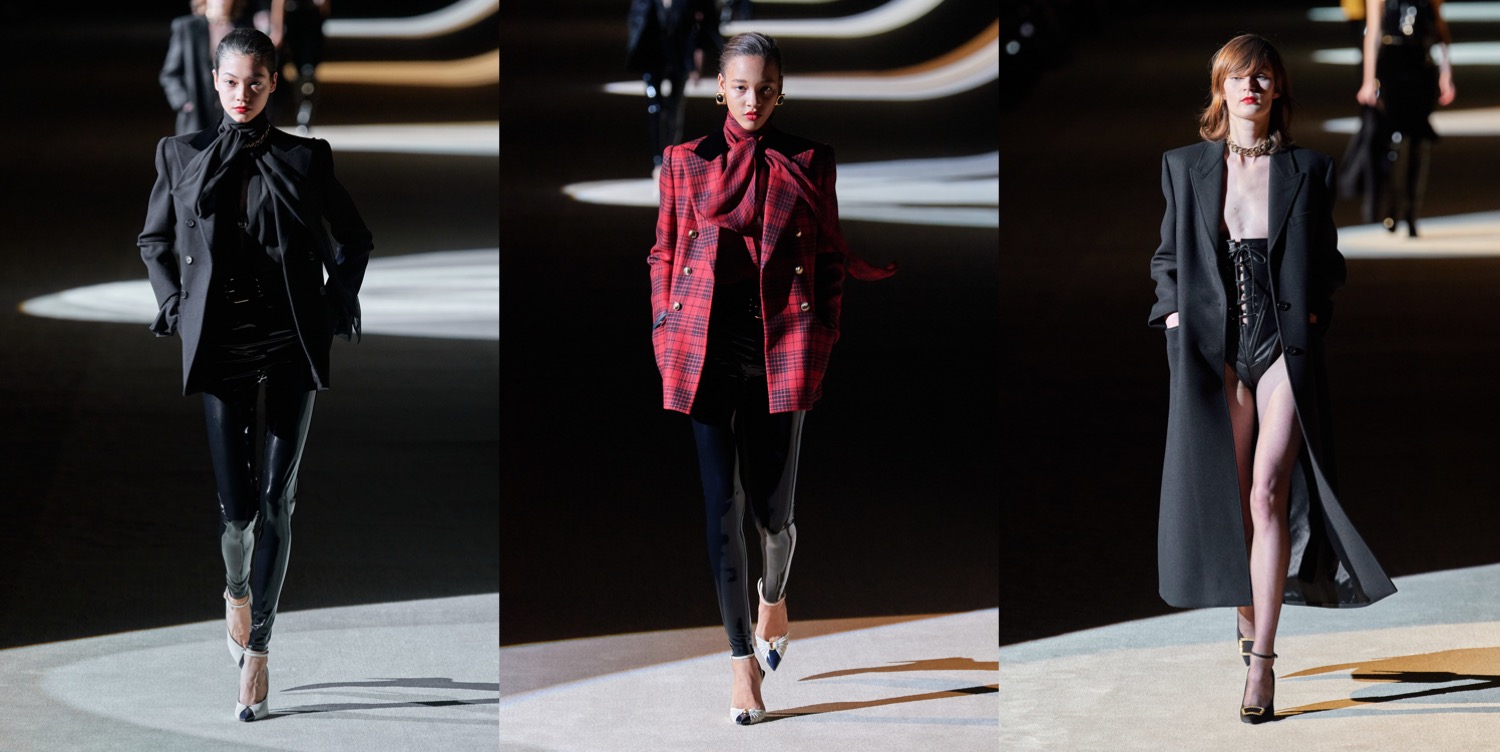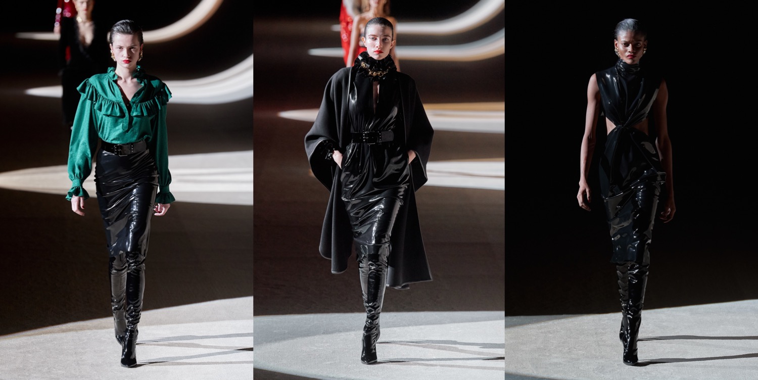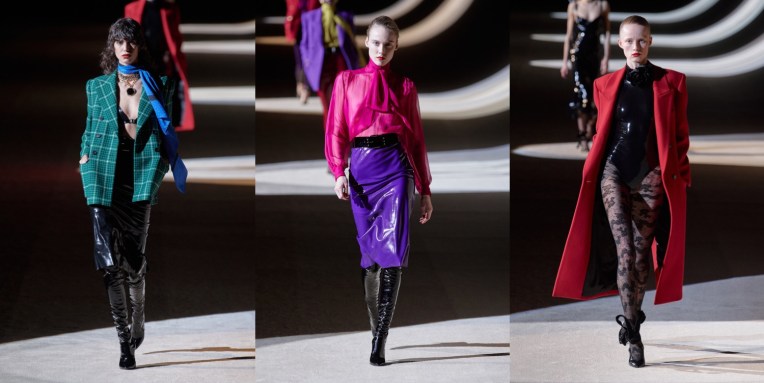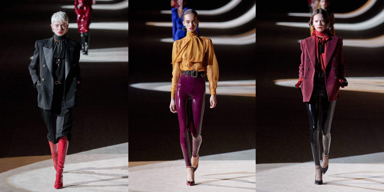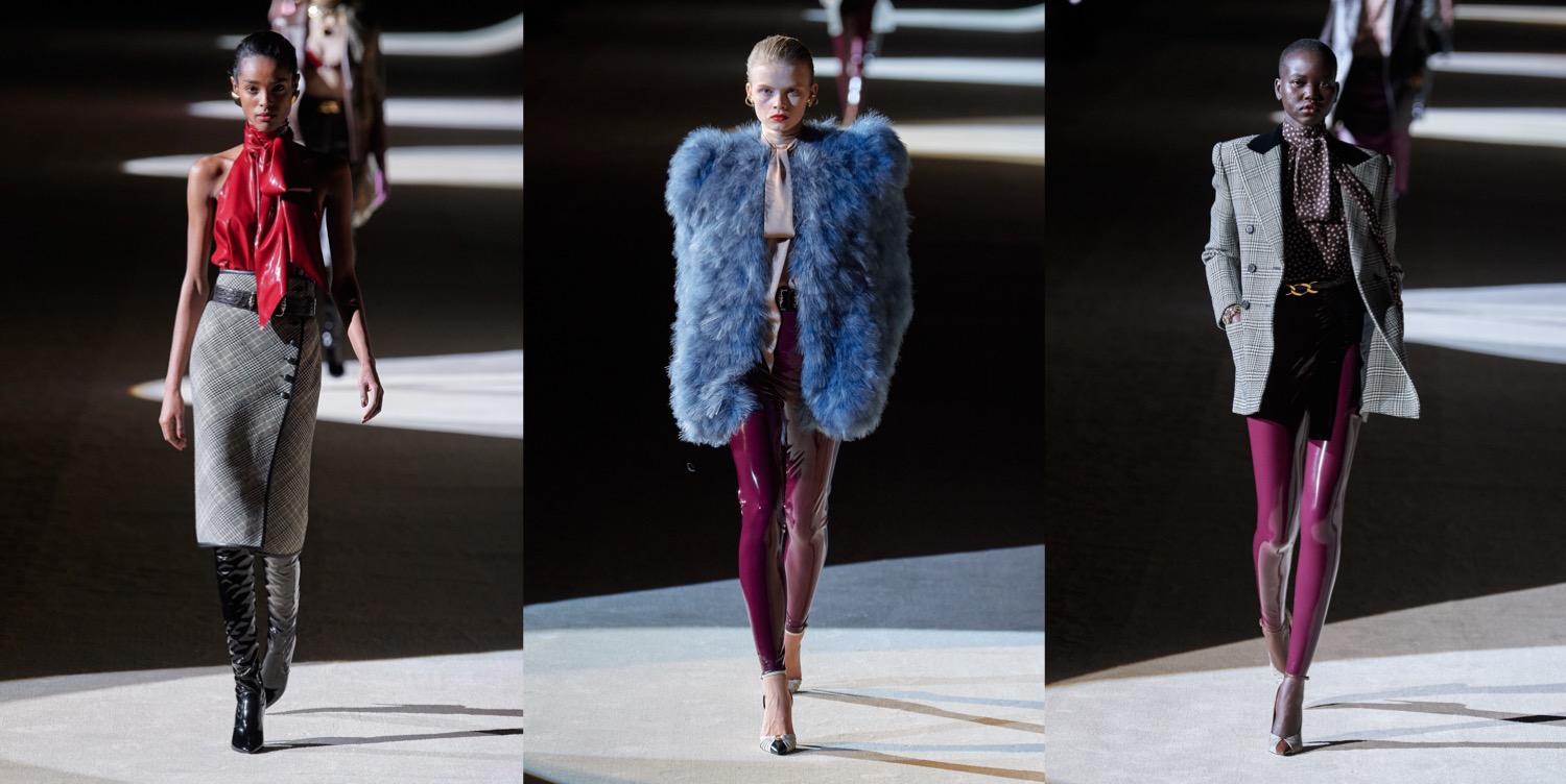 Here’s one of the most brilliant collections coming from Anthony Vaccarello for Saint Laurent. There was power, there was vibrance, there was colour – something I missed or didn’t really feel in his last collections. And, it didn’t look like Hedi Slimane’s Celine. The opening look laid bare exactly what he was thinking of for the season: an haute bourgeois red tartan double-breasted blazer, gilt-buttoned, velvet-collared, atop a matching jabot neckline blouse, hair swept back, substantial gold and jet earrings, and… black latex trousers. And there was plenty more of tailoring: exquisite jackets, impeccably cut, double-breasted, many with those same gilded buttons, in ochre cashmere, pearly gray flannel, jaunty navy wool, natty brown houndstooth – and all worn with those same dominatix, all-gloss pants. What was new and completely refreshing was the way Vaccarello chose to riff on the lush sensuality that Monsieur Saint Laurent was such a master of. And what else was new, yet very Yves: the uninhibited sense of color, with Vaccarello working his way through the classic YSL palette – fuchsia to purple to emerald to hot pink – and showcasing it his own way through that extremely non-classic latex. But when styled with YSL’s Le Scandale-inspired fur coats, it all made even more sense. Backstage, Vaccarello acknowledged the #MeToo climate, and spoke of celebrating a woman’s power and her own sense of self. Ever since his arrival at Saint Laurent, Vaccarello has endorsed a woman’s right to express her own physicality, and her sexuality, any way she wants.