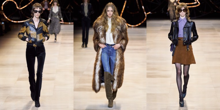 My reaction to Hedi Slimane‘s Celine follows the sinusoidal pattern of emotions I had about his work at Saint Laurent. First, I felt aversion. Then, for a moment, I was amused. In the end, I lost interest. Quite dangerously I’m entering the third phase. Consistence and assertiveness is key for a brand to succeed, yes. But Slimane’s stubborness – same venue, same models (now he even has the same faces he had back at YSL), pretty much the same music, and, what’s worst, same clothes, is quite the art of fashion procrastination. Yes, yes, I know the closing gowns are couture and they took hundreds of hours to embroider. And I’m aware that the 1970s nostalgia is a common, widespread thing for the last (and probably next) couple of seasons. Slimane doesn’t push the envelope, because it’s the aesthetic he loves and repeats over and over again. But he doesn’t even bother to rework it. It’s great that you can buy a pair of denim pants at Celine, or a corduroy mini-skirt, or a retro-lookig dress. But do we need a fashion show for this sort of clothes with more than 100 looks?