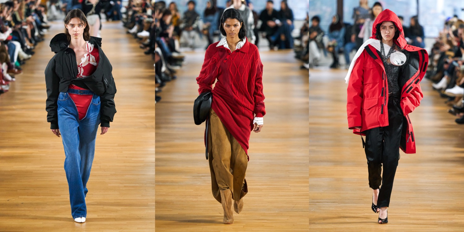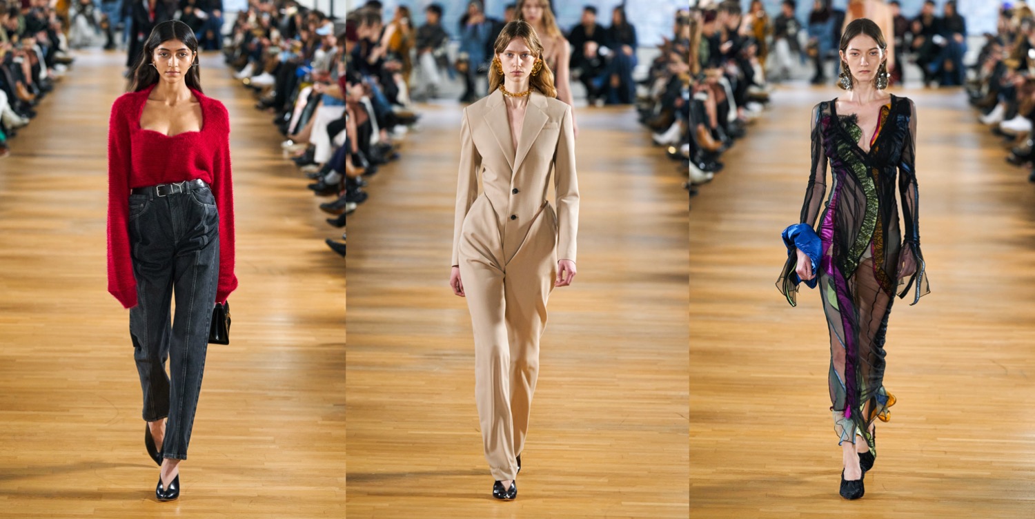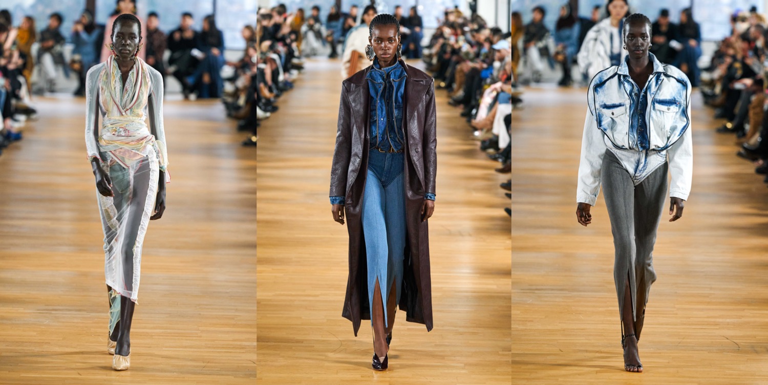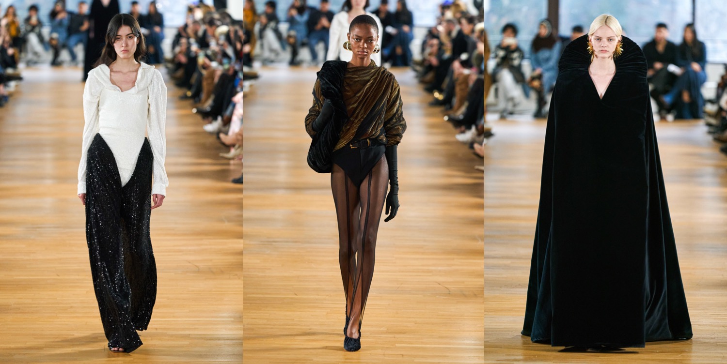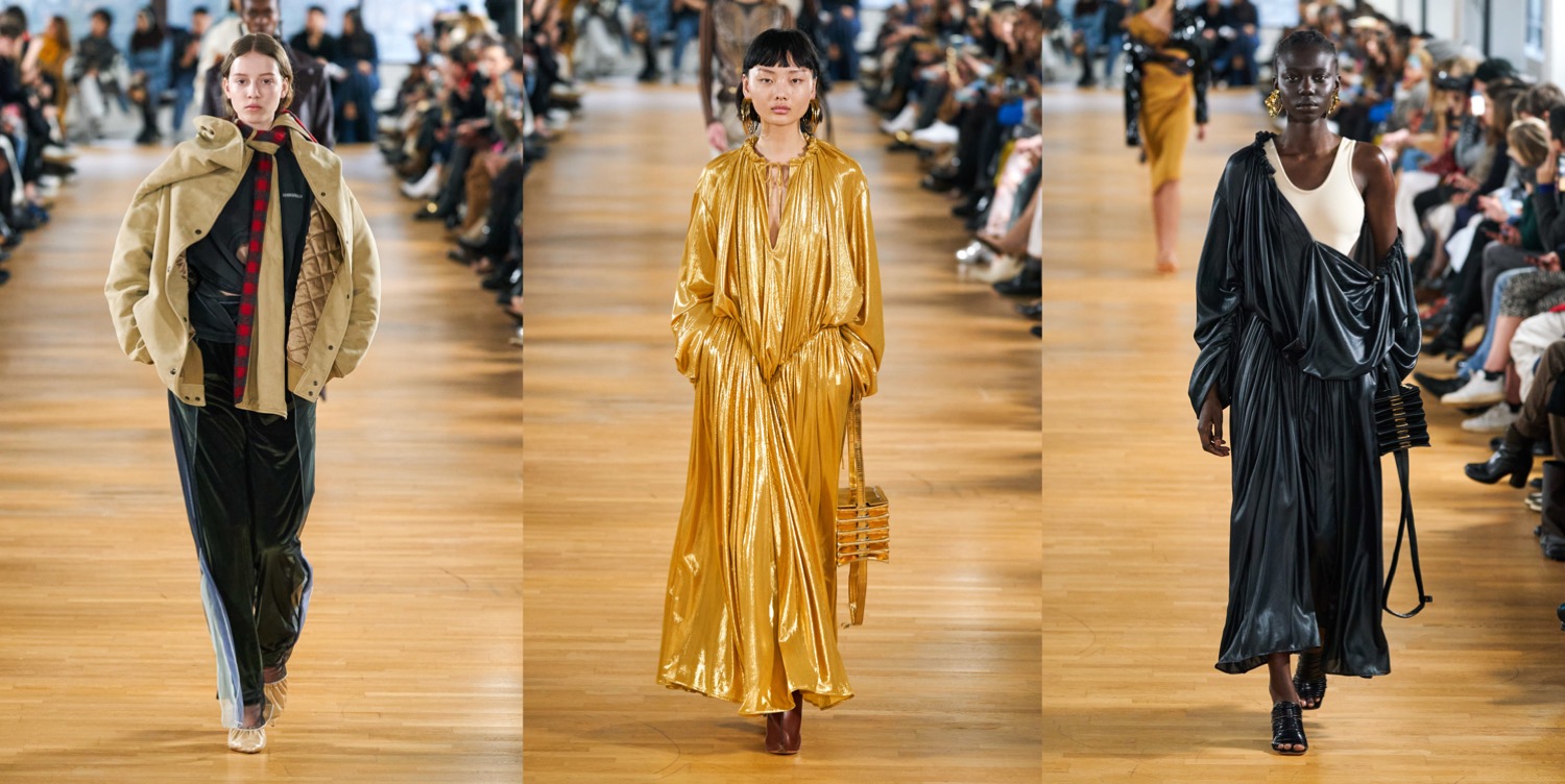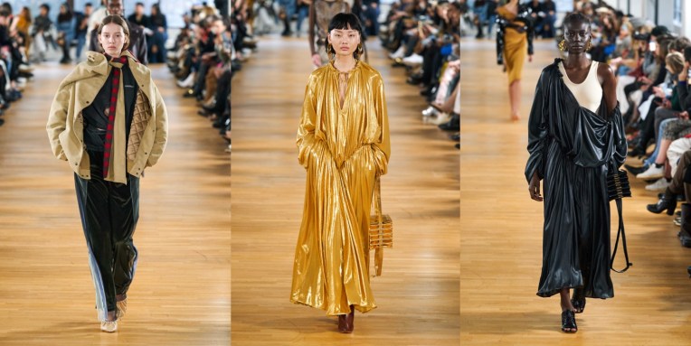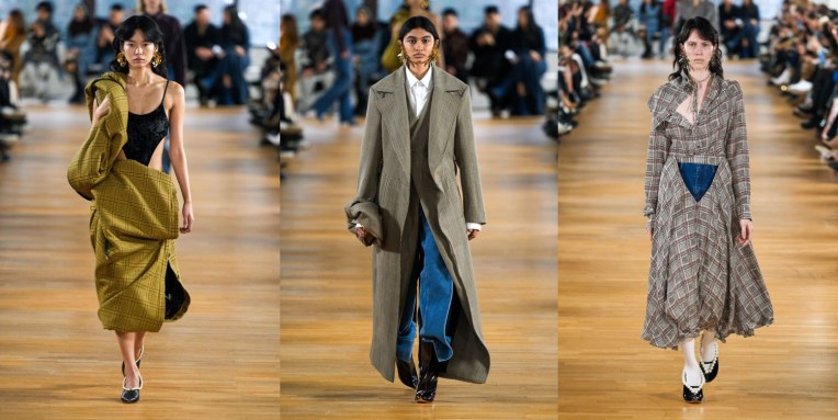 Y/Project‘s creative director Glenn Martens is known to walk the tightrope between good taste and bad, usually pulling from a grab bag of wide-ranging pop cultural and historical references. In his hands, fashion moments from the early 2000s can easily bump up against those from the 1500s. The designer has borrowed from the architecture of Elizabethan armor to refigure the classic blue jean in the past, and for autumn-winter 2020 he took that risqué, deep-V silhouette into more refined territory. His version of a classic tuxedo was elongated along the body, with a blazer turned bodysuit that fit neatly between each suspended trouser leg (as Martens explained, a hidden belt and secret cycling shorts were responsible for the floating effect on these pants). In Y/Project’s collections, it’s the subtle twists and turns that stand out the most. Martens has perfected his askew approach to tailoring, as evidenced in the sleek opening look. But in general, it seems to me that Martens’ work starts to get repetitive: it used to spark more intrigue in his previous seasons. Maybe it’s just a phase.