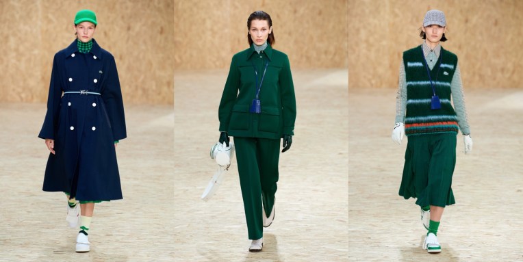 Louise Trotter‘s take on Lacoste gets better and better with every season. Golf bags, kiltie loafers, and signature green crocodile logo were all over the autumn-winter 2020 – Trotter knows that a brand like this needs its codes to be nurtured continously – but there were other additions. The designer has not abandoned the brand’s tennis heritage for its neighboring sport at the country club – through these golf-inspired pieces, she is paying homage to René Lacoste’s wife, Simone de la Chaume, a champion golfer whose legacy has been overshadowed by her husband’s embroidered gator. In De la Chaume’s heyday in the 1920s, shin-grazing pleated skirts and deep-V knitwear constituted the on-green look for women; here, Trotter refigured these silhouettes to be lighter, breezier, and in flashes of pastel colors. Styled as total looks – according to stylist Suzanne Koller’s own wardrobe rules – these golfing ensembles had a quirkily modern feel without veering too far into costume. The colour palette of the collection was definitely one of the most inspiring this season. I think buyers and editors aren’t really taking the new Lacoste seriously. And they actually should: it’s great.
