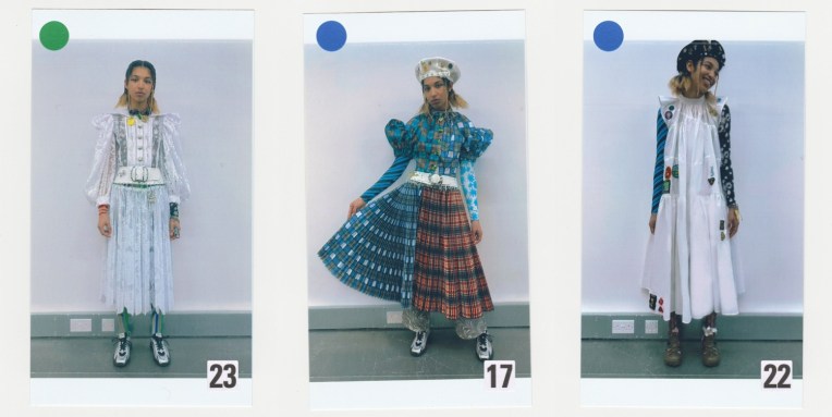 I bet you’ve seen the unmistakable, Chopova Lowena skirt – multiple-pleated patchworks, suspended by mountaineering carabiners from chunky leather belts – on the street style arena. They are so distinct in their look you that just can’t miss them in the crowd. Emma Chopova and Laura Lowena‘s signature, made out of traditional fabrics from Bulgaria – and produced there – was the start of their label’s story. In a short space of time they’ve developed a cult following for their upcycled collection: colorfully cool, full-skirted dresses with big puffed sleeves, layerings of tartans and ’70s prints. Also, their way of doing things is so appealing. “It’s important for us not to make clothes for the sake of it, but to make things which are part of our heritage, and are helping people,” they say. Chopova’s light bulb moment was realizing that her home country is full of under-recognized cultural resources – both in terms of rich fabrics and skilled female sewers. “After communism in Bulgaria, it was all about adopting a Western lifestyle,” she says. “So all the beautiful traditional clothes which had been made as dowries for brides, which people kept in trunks for generations – they didn’t find them precious anymore, and were throwing them out.” The designers began retrieving them, along with 1970s mass-produced flower-print and check taffeta deadstock, then made a network of Bulgarian women seamstresses to make their collections. “It’s built up by one friend knowing another – someone knew a granny who loves embroidery, the old technique they used for aprons. So now it’s great that everything’s being made by these women who really know their skill.” Thanks to another friendship-group link, Chopova Lowena has hit on original way of making jeans this season, printed with beautifully faded marbled patterns, inset with florals. “It’s made by women in their houses in Bursa in Turkey,“ Chopova told Vogue. “We discovered it through one of the Bulgarian women we work with, who goes there. It’s a-300-year-old technique which is used for making Turkish tiles; but now we’ve transferred it to fabric,” she continues. Every piece is unique. In times when sustainability must be the keyword for every brand out there, this ethical way of working comes naturally for these two designers. “We think it’s a luxury to be able to have something handcrafted, and to know where it comes from,” Chopova says. “When we were starting, with all these old materials and telling buyers that, no, everything we make can’t be the same – we never even guessed that it would be welcomed.”