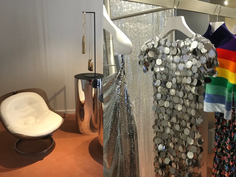 Paco Rabanne is growing under the wings of Julien Dossena, so it’s no surprise it’s opening first stores in Paris. The new location – opened just a month ago – is hidden in the same court yard as the above mentioned Comme Des Garçons. The 1960s-inspired interior perfectly matches Rabanne’s signature chain-mail dresses, floral skirts and metallic accessories.