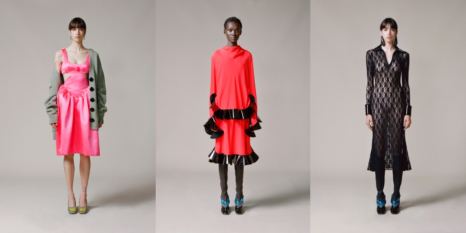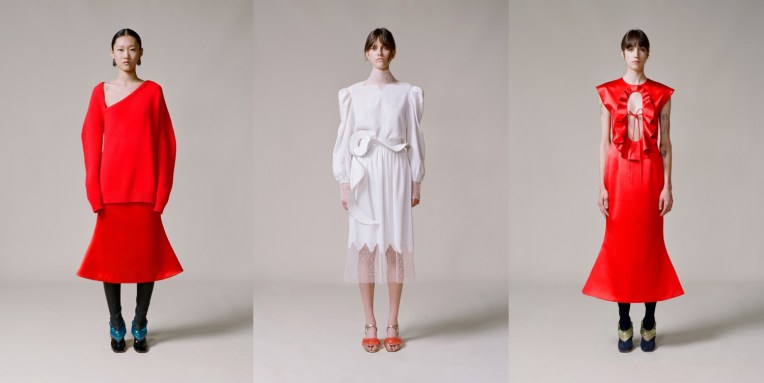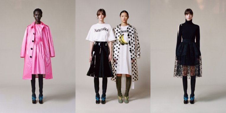 For pre-fall 2020 – which got launched on-line in the middle of corona – Christopher Kane was thinking about making “a stripped-back collection,” a line-up addressing his label’s most distinct codes: “sharp tailoring, flounces, bell skirts, and chain mail”, as he told Vogue Runway. Although the process of designing the collection took place well before the pandemic broke in Europe, it has a concept that might really work well business-wise for other brands in the future. A well-edited pack of looks that clearly states what the brand is all about (in case of Kane: an intelligent, at times quirky, take on sexuality), a serve of few bold silhouettes that will actually sell (love the flared midi-skirts in electric red), something fun (the Naturotica t-shirts!) and in general, items that feel relevant and… desirable.