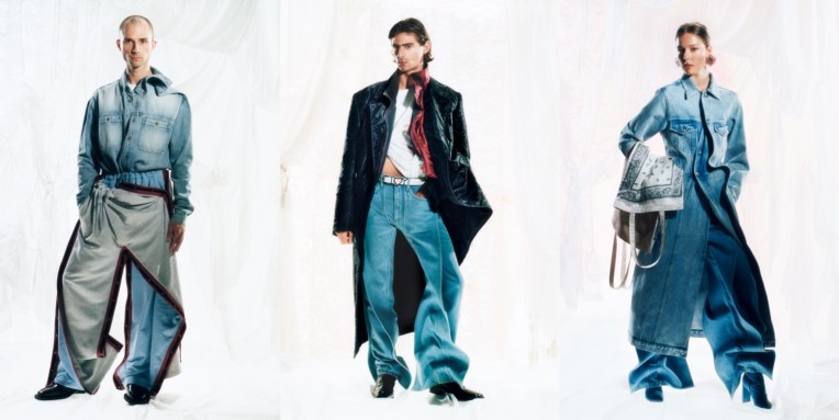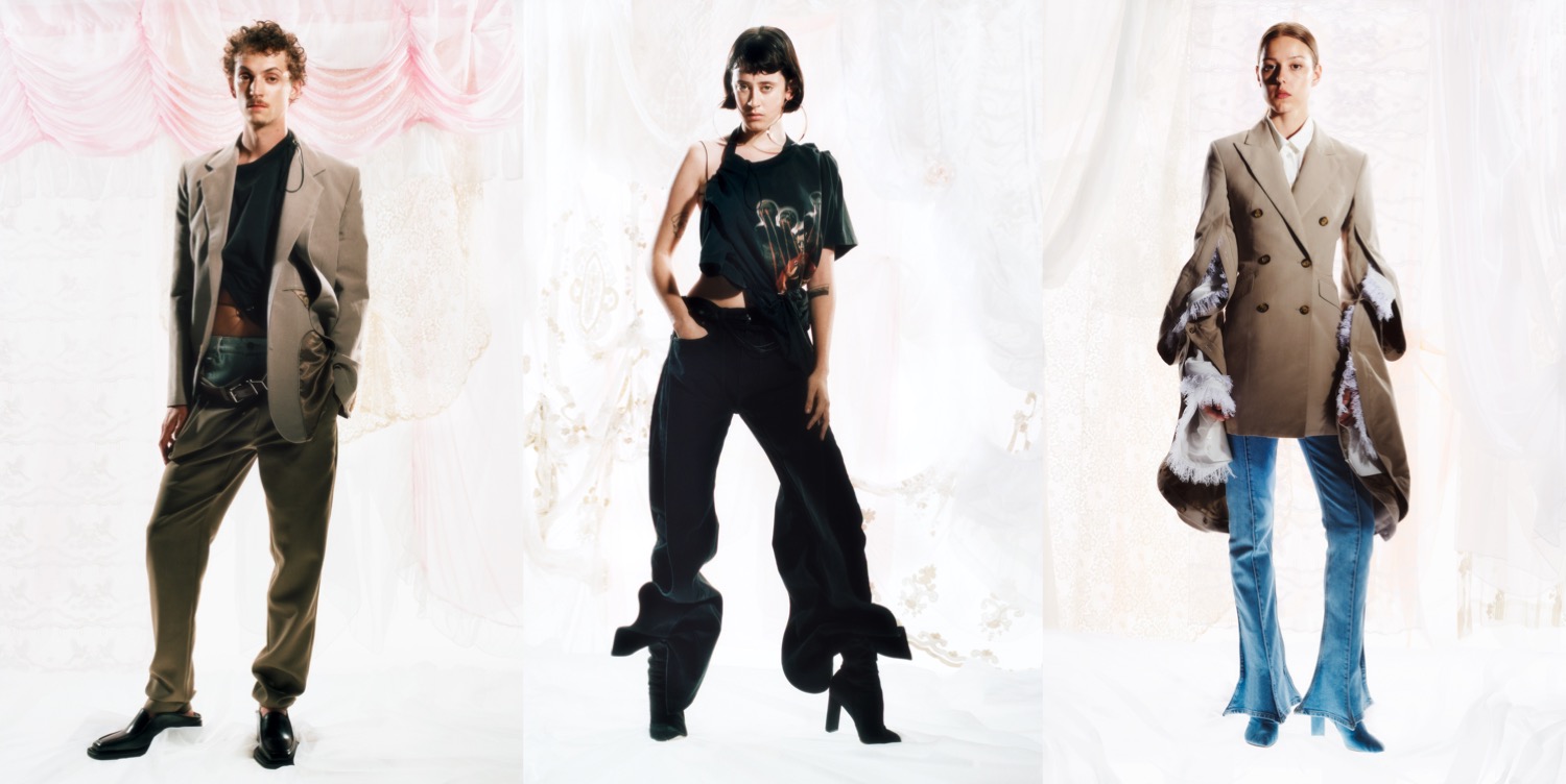 Business really isn’t as usual in the times of COVID-19 (and even in the “post” moment that’s now in Europe). Traditionally, end of June and beginning of July is the the moment for all the resort and men’s collections, and in general this time of the year is a sort of “summer September” of fashion. But not entirely in 2020. Showroom visits for the press and buyers are done via Zoom only. Majority of collections feel very safe and are based on the brand’s signatures. Still, some of the line-ups impress, and moreover, appear to be some of the best work coming from the designer in a while. Glenn Martens‘ Y/Project is a great example of how crisis and chaos can bring new ideas and trigger a kind of brand evolution. Martens’ innovatively constructed, apparently woozily skewed garments whose conventional templates are drawn from across the demographic landscape of womenswear and menswear, are brain-bending at first glimpse, and often only make sense upon second look. “Obviously, these looks are distorted, and that is part of the fun of the brand. But most of them you can wear calmed down. Have you seen the video?”, he told Vogue. This season, instead of holding a menswear fashion show, Martens worked to create a video show-and-tell for Y/Project newbies that he said was partially inspired from the opening scene of Dangerous Liaisons, in which Glenn Close is laboriously installed into her pannier dress. Here Martens and two colleagues show how looks from these jointly digitally presented collections can be worn; take a fitted, ruched-body womenswear jacket, pull a drawstring, and – ta-da! – you have a full-length dress. Or reach into the innards of a louchely cut suit and – voilà! – you have a double-layered look with a new denim foundation. Martens concluded: “It’s a kind of lava lamp of looks… showing how you can personalize your clothes and how you can make it look as crazy as you want or you can tone it down as much as you want.” The collections here are around a third the size of a normal-times Y/Project offering, and Martens said that the restrictions of lockdown meant that many of the pieces were hewn from deadstock. The collection includes past designs that have been redesigned and upgraded to be even more twisty the second time around. This is a virtue, as is that distorted adaptability that is at the core of Martens’s work – for what could be more sustainable than a single garment that you can wear in a multitude of ways? Also, as the press was informed, Martens discussed Evergreen, which is the title of a new all-sustainable collection of core Y/Project pieces that will start with a launch of 16 pieces online in September, and then be added to going forward. “It’s a selection of garments, which I believe can go into your wardrobe forever. And we also decided to only make them in the most basic materials which are not at all oriented to a season, so it’s really black, white, and denim.” These garments are not “basics” – the initial lineup includes Y/Project’s much-socialed, super-skimpy, jean/panty “janty” hybrid – and bear all the usual twisty codes of Martens’s design-eye, including rotating-collar shirts and hoiked-shoulder blazers. Looking forward to see it!