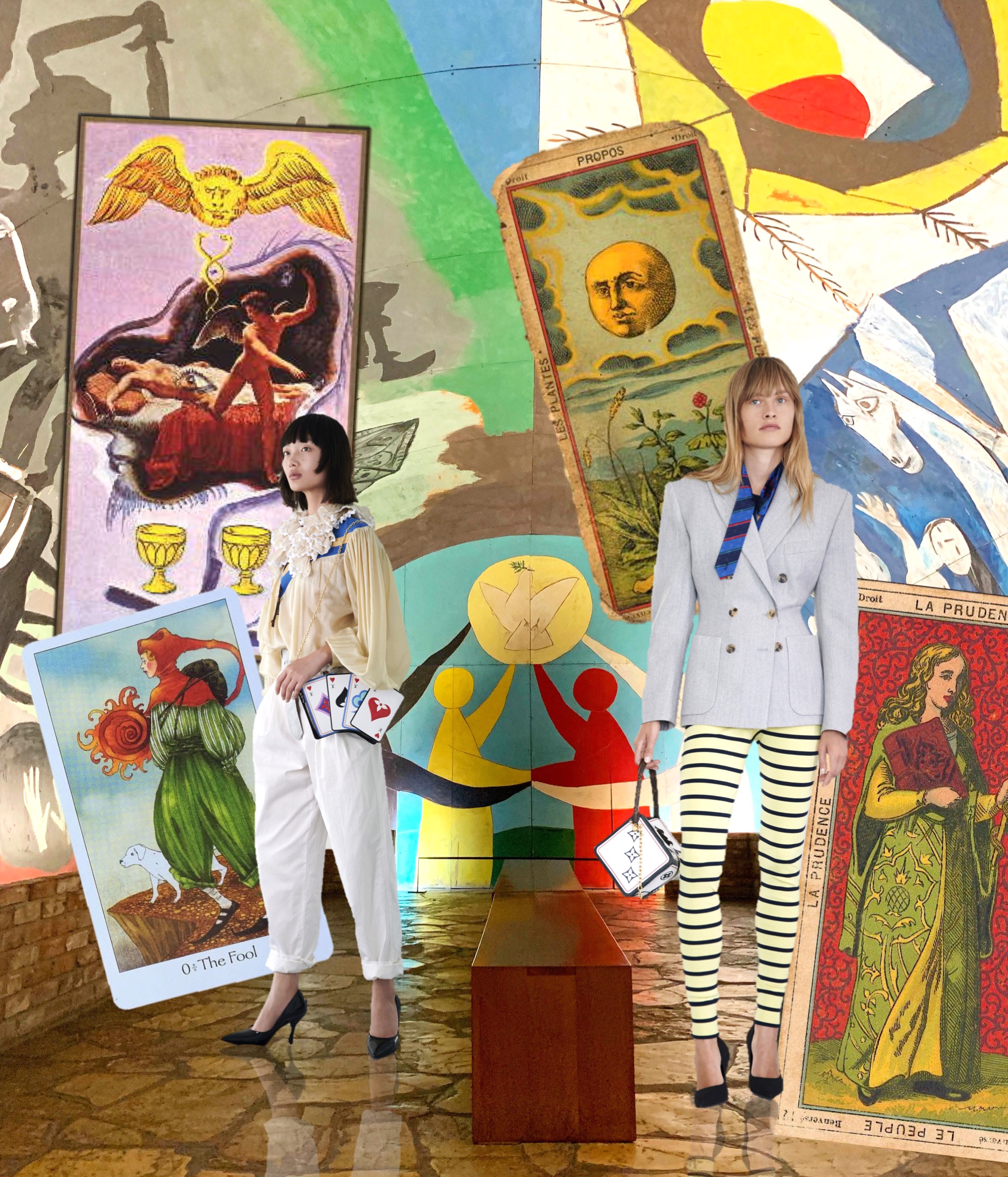For many people still working from home, the word “office” sounds abstract. Tailoring isn’t a novelty in the resort 2021 collections, but only the Louis Vuitton line-up by Nicholas Ghesquière makes you think that some day, the “business” dress-code will come back to our lives and replace the lazy Zoom homewear. Emphasizing the more everyday, less editorial aspect of his ready-to-wear, the look-book was shot on location in Louis Vuitton’s Paris headquarters. A photocopier stands at attention in the opening shot, and exit signs and fire doors appear in the background of others. The promise of gorgeous hourglass blazers and chic silk blouses makes the longing for “back to life” life even more intense… but this wasn’t the only aspect of the collection (which, by the way, was good without any far-fetched venue location). “I looked somewhere that has been calling out to me for a long time, somewhere I hadn’t taken the time to go back to. It was like a reset to uncover one inspiration after another, to imagine the next steps and how to create and work within this new context. I took the time to explore my creative identity and prepare the future.” Confronted with the unknowns of the coronavirus and the crushing recession it precipitated, designers have been revisiting their past successes. Nicolas Ghesquière is among them, though the search for lost time is not only a quarantine pursuit for him. On his autumn-winter 2020 runway, with the then as-yet uncanceled Met Gala and its theme of “Fashion and Duration” still on the horizon, Ghesquière held up a mirror to his own work. For this resort collection, he followed similar guidelines – lifting cargo pants from one collection and frilly rococo collars from another, and reuniting with the blouson shapes of the 1980s he likes – with results that read more easier than his runway outings typically do. Additionally, running through the collection is a playing-card leitmotif. When asked, Ghesquière claimed “the tarot” as his favorite card game, “because it can be used in many different ways. And the cards are full of symbols.” Nonetheless, he made effective use of the clubs, diamonds, hearts, and spades of the playing-card deck. They bear more than a passing resemblance to the elements of the Louis Vuitton monogram, which Ghesquière made the most of by hybridizing them and then either adding them as decorative details on bags, or supersizing them as color-blocked patterns on streamlined mini and maxi dresses.