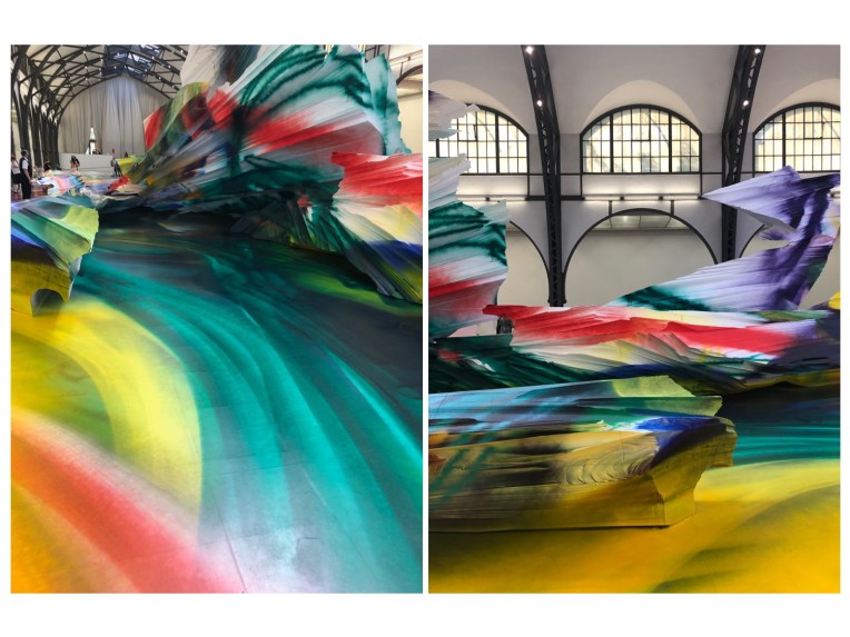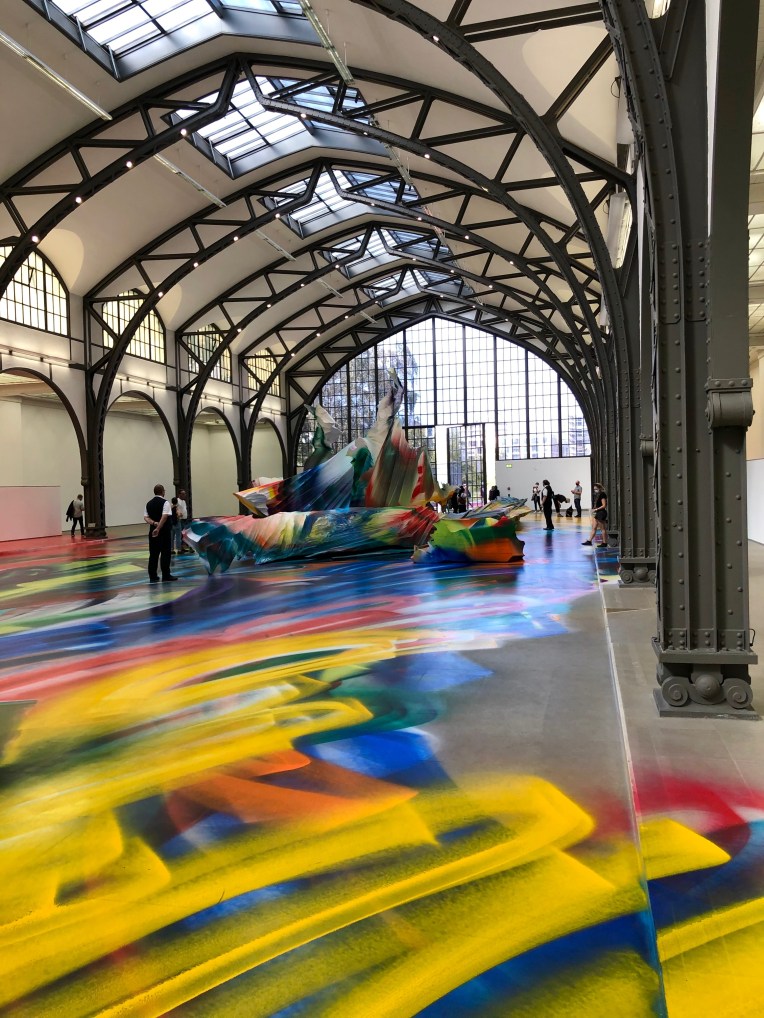 Oh, how I’ve missed museums! I wanted to see Katharina Grosse‘s “It Wasn’t Us” exhibition so badly! First, I love her immersive work. Second, coming back to Hamburger Bahnhof, one of Berlin’s best museums of modern and contemporary art, was a good idea, as I’ve been there once as a child and I forgot how great this place is. Now, back to Grosse. A painting by her can appear anywhere. Her large-scale works are multi-dimensional pictorial worlds in which splendid color sweeps across walls, ceilings, objects, and even entire buildings and landscapes. For “It Wasn’t Us” the artist has transformed the Historic Hall of Hamburger Bahnhof as well as the outdoor space behind the building, into an expansive painting which radically destabilises the existing order of the museum architecture. Katharina Grosse’s latest in-situ painting disregards the boundaries of the museum space in a grand and colourful gesture: “I painted my way out of the building,” said Grosse in relation to her work. Over the course of several weeks a vast new painting has emerged that stretches across the Historic Hall and into public space, over the extensive grounds behind the museum, landing finally on the façade of the so-called Rieckhallen which were inaugurated as a part of the museum complex in 2004. Grosse’s kaleidoscopic painting brings together colours and forms, natural and man-made surroundings and its visitors as participants in an all-encompassing, pulsating interaction of hues. The boundaries between objects, and between horizontal and vertical orientations begin to melt away, and the work’s scale continuously shifts depending on the visitor’s position. As the viewer moves through the painting new spaces emerge that are both artificial and ripe with associations, and at the same time completely real, forcing us to renegotiate our habitual ways of seeing, of thinking about, and of perceiving the world around us. The choice of the location and the many different factors and conditions it entails have influenced the development of the painting, just as the permanently shifting lines of sight of the viewer and unexpected interactions with the work affect our ways of perceiving it in the exhibition setting. In this sense, the work’s title, It Wasn’t Us, can be understood as a reference to the inherent complexity and unpredictability of a given situation, whether it be the conditions under which artists create their work, or the conditions under which it is later viewed. The painting exists only for the duration of the exhibition – which is open util the 10th of January 2021.