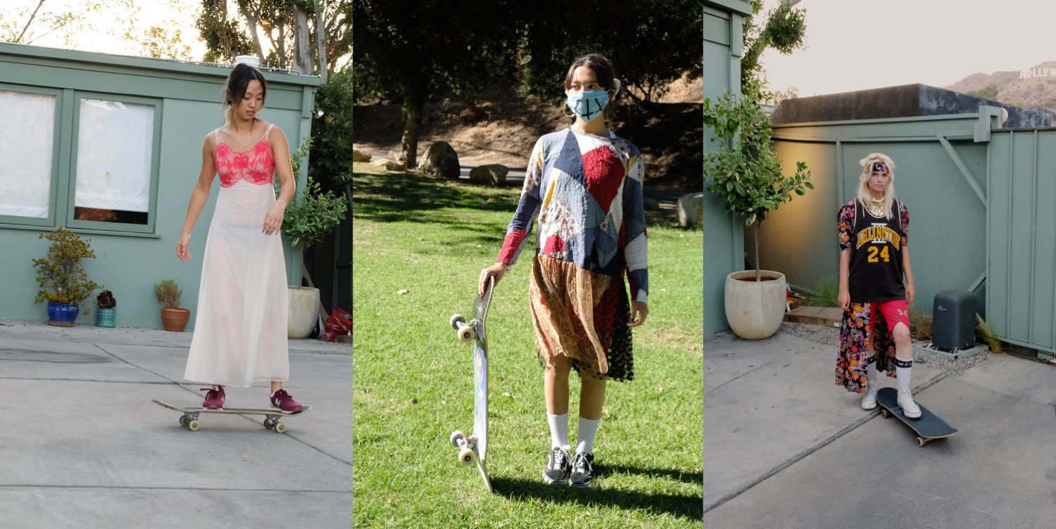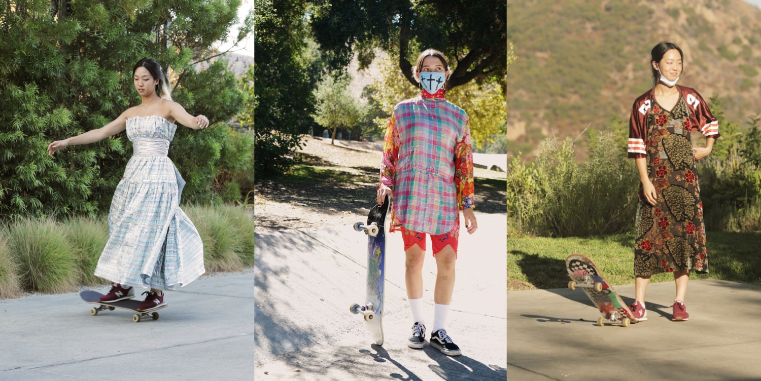 I discovered Imitation of Christ a year ago, and when I’ve shared some archive images from Tara Subkoff‘s early 2000s shows on my Instagram stories, many replied to me that they’ve never heard of the brand and that it’s just so, so amazing. I was in awe, too. Each of the label’s collections was presented as a sort of ironic performance: a funeral show; a red carpet line-up opened by Chloe Sevigny; a collection solely dedicated to denim, with Scarlett Johansson as a Marilyn-Monroe-look-alike model. Then, the brand seemed to go into a hiatus, then it came back for a moment and disappeared again. And then, to my surprise, somebody posted on Instagram that Imitation of Christ is back this summer with a guerilla couture performance in Los Angeles. And now, here we are with Subkoff’s spring-summer 2021 collection – in a moment that one might never suggest for a brand that’s planning its “big” come-back. But Imitation of Christ isn’t a regular brand, so the circumstances just couldn’t be more exciting. Twenty years after the brand’s first show on the escalators in a subway station, this season’s performances (there were two, one in Los Angeles, one in New York, not identical, but each consisting of a capella singers accompanied) are equally inventive. And, while all of this is going on, The RealReal, from which Subkoff sourced some of her pieces, will offer the spring collection for sale in see-now, buy-now fashion, with part of the proceeds going to Greta Thunberg’s nonprofit Fridays for Future. Upcycling or “resurrecting” existing pieces is the central tenet of Imitation of Christ, and it means that every piece is unique. Collection themes do emerge, however, and are crystallized by the way they are presented. Skateboarding is the organizing principle this time around, and Subkoff describes the clothes as “glamorous activewear” – say, a vintage slip attached to the front of a sports jersey. Some of it could have been hand-sewn by the bored, home-imprisoned Lisbon sisters from Sofia Coppola’s The Virgin Suicides, by the way. Subkoff became acquainted with skateboarding girls when she was feeling a bit blue. Struggling to find inspiration, the designer started visiting local skateboard parks, which she found to be “heavy on the dude feeling” until she noticed the young female skaters trying to master tricks, falling down, and starting over again. In their determination Subkoff says she found a “good metaphor for what it feels like, to me, to be female in this world in some capacity. Like you just have to keep doing it, until you do it better than the men. And then you have respect in some way.” Looking forward to more of Imitation of Christ, as it’s one of the most enigmatic and intriguing labels in New York.