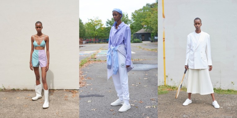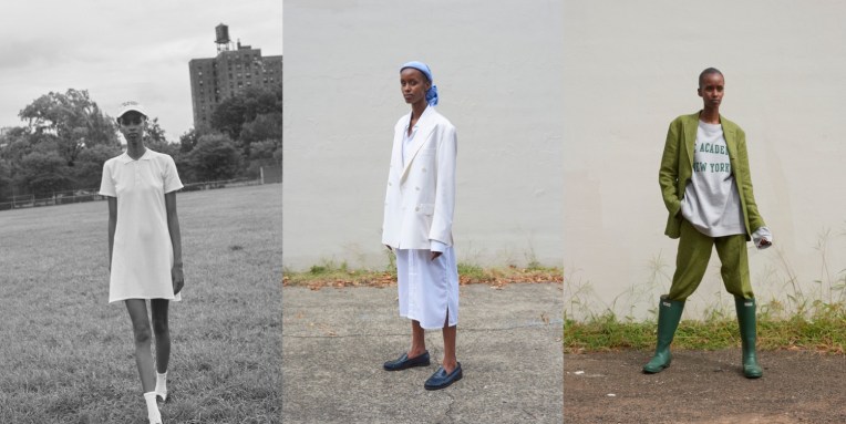 One of my favourite discoveries from the digital New York Fashion Week is The Academy New York. Making it through the last half year has been challenging for all brands, big and small, but Swaim Hutson might’ve had it harder than most. The Academy New York is his one man show, and autumn 2020 was the first season he’d hooked up with Stella Iishi’s The News showroom to turn what had been a personal passion project into an honest-to-goodness wholesale operation. He took to Instagram last week to celebrate the fact that, despite the pandemic, he was able to produce and ship the collection to 10 stores. Another reason to celebrate is the brilliant spring-summer 2021 line-up. Tennis, a childhood pursuit of Hutson’s, is the organizing theme behind the collection. One check pantsuit was overdyed a tennis ball yellow and there are riffs on on-court attire in the form of a short knit polo dress and elongated tennis skirts in a lightweight suiting wool. He’s also elaborated on his sweatsuit offering; now there are hoodies and crewnecks, pants and shorts. Leather biking shorts are another nod to the way things are now. But tailoring The Academy’s biggest signature. On that front the most interesting development was an oversize double-breasted jacket long enough to wear with bare legs – and a pair of his tennis bloomers. Another favourite – and a great styling tip! – was the blue shirt-dress worn with over-sized denim pants and minimal ballerinas. Cool and easy.