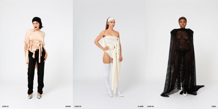 Although digital-live Paris Fashion Week has officially started today, there are still some great collections coming from New York. One of them is Vaquera, a line-up that ironically muses on different kinds of elegance, created by Patric DiCaprio, Claire Sullivan and Bryn Taubensee. Over the summer, one of the most “outsider” brands out there got suddenly certified by the upper echelon of fashion – but not the most common one, though. After hosting their autumn-winyter show back in February, Dover Street Market added Vaquera to the roster of brands it supports through its Paris showroom slash incubator. DSM will help with production and handle all sales and distribution, “the backend stuff that takes us away from being creative,” as DiCaprio put it. The point of the arrangement is that with DSM handling the commercial side of the business, the Vaquera trio can focus on creativity. But the partnership has already impacted how they’re channeling that creativity. “Knowing they’re going to be there on that side helping us with sales was really inspiring, for me at least,” DiCaprio continued. “We were like, ‘Let’s make this skirt perfect and the fit really nice and make these fabrics really good so they look good in their showroom.’” Their new collection is a sort of codifying of the Vaquera ethos and aesthetic. Wearability has been emphasized without forsaking too much of their hold on weird. So side by side there are washed denim jeans cut to fit both guys and girls and a Little Bo Peep cosplay outfit in white canvas and croc-stamped vinyl. Mixing with twisted bankers stripe shirts and oversized suiting is a tutu explosion in an amorphous body-obscuring shape of the kind you might see on a Comme des Garçons runway. “We were inspired by what we want to wear, what our friends are wearing, who we’re with,” Sullivan elaborated. “That’s so much of what Vaquera is: context, reference, culture. What do you wear, what do I wear, how do we make it Vaquera?” In certain neighborhoods of New York this summer it wasn’t unusual to see women wearing their bed clothes on the street, one of the many impacts of months in lockdown. In the look-book, that translates from innerwear to evening-outerwear. What makes it Vaquera is that all genders sample the retro bra tops and the satin and lace teddies affixed to T-shirts. New, never-average, edgy elegance for whoever feels it.