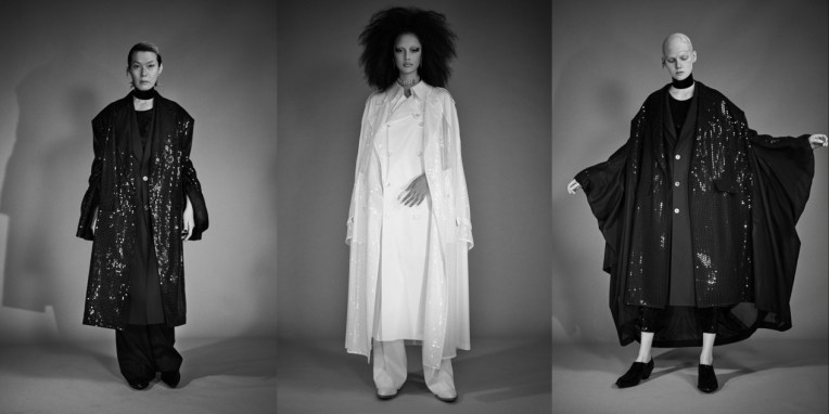 Disco is having a rebirth in music – just think of Jessie Ware, Róisín Murphy or Dua Lipa’s latest records. During lockdown, we’ve all dreamed of a care-free party, so no wonder why some designers chose this escapist, joyful theme for the spring-summer 2021 collections. Discussing his latest outing, Junya Watanabe’s press notes said, “It is a collection that reproduces the costumes worn by the stars in my memories. My memories are monochrome, and I created a photo session with four fictional stars.” The black and white images feature an assortment of apparently black or white looks, plus one or two more in silver. Nearly all of them are sparkling with sequins dresses that get the party started. The 1960s A-line gowns that close the look book, but also the trenchcoats that are integral to Watanabe’s oeuvre, have a disco noir feeling about them. Last season Watanabe paid punkish tribute to Debbie Harry. Though the Spangles may owe a debt to the Supremes, these muses are more abstract. In its spotlighting of sequins, the collection feels of a piece with earlier Watanabe shows that had singular focal points of their own, like army fatigues and puffers. His new season clothes have an easy-to-wear aspect that many have keyed into in this COVID year. I’s a whole lot of caftan-like shapes and leggings, essentially and a stripped-down outing by house standards. The most complex shapes were the coats whose hems looped up, creating generous volumes. But in tricking everything out in spangles Watanabe turned the concept of #WFH-wear on its head. Comfort, he gets. Hibernation? Not so much. Sequins are associated with happier times. If and when the world opens up, Watanabe’s women will be ready to loose themselves on the dancefloor.