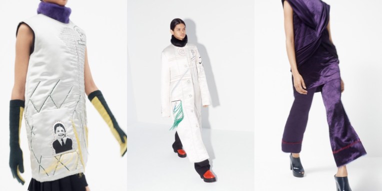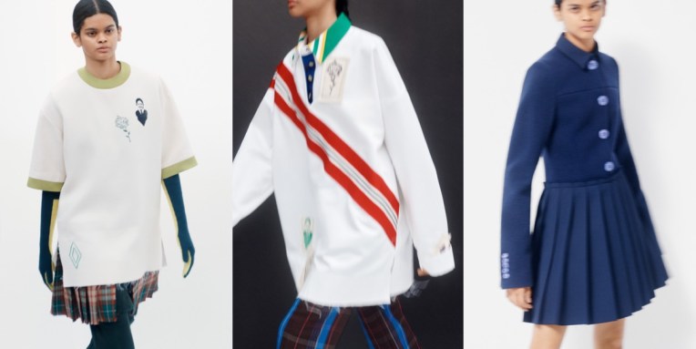 I’ve been following Marina Moscone‘s work since her first line-ups in 2018, but to be honest, pre-fall 2021 collection is the first time I’m truly convinced. There’s something spontaneous, truly artful, yet absolutely refined about it. Moscone has always liked the idea of a uniform, yet she doesn’t wear the same thing every day. It’s more about figuring out the foundation of her style so she can build upon it. For the designer herself that often starts with a shirtdress over trousers, or maybe a curvy suit with flat sandals, and she’ll experiment from there. Pre-fall found her thinking more literally, though, with familiar nods to school uniforms: pleated kilts, rugby shirts, shrunken blazers. The opening look was a twist on her signature overcoat, now spliced with box pleats at the hem (and styled with socks and loafers). Other tunics and blazers had plaid panels tacked to the hips, like trompe l’oeil skirts. What you can’t glean from the lookbook is that those collaged items were all cut from the same material: The olive wool tunic, for instance, was backed with the same emerald and yellow plaid that appears on its “skirt.” Moscone created those double-sided wools in spite of the fact that most people won’t notice their detail on an iPhone; more importantly, it’s the kind of refined touch her customer appreciates. Another detail will be more obvious: the patches and embroidered quotes on a blazer and a duvet-like “art coat” in ivory satin. There’s a bird of paradise flower, Moscone’s favorite South African bloom; an elephant, symbolizing wisdom and persistence; a honeysuckle rose flower, which Moscone’s grandmother used to call her; and two portraits of a little boy and girl, Moscone’s parents as kids. The coat is quilted over in places and has scribble-like printing and fringe, as if a child went crazy with a box of art supplies. Moscone hopes it will offer both comfort and uplift – a combination also found in her new crinkly tops and pajama pants, a welcome WFH update. Look forward to this collection once it hits the stores!