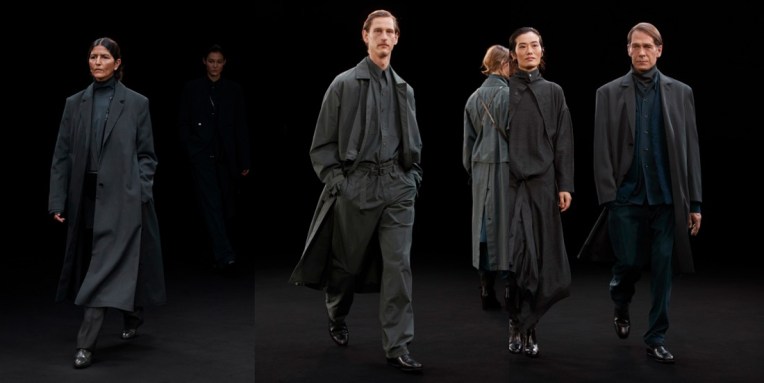 I love Lemaire and I will acknowledge this a hundred times. I just don’t know how Christophe Lemaire and Sarah Linh Tran do it every single time. This level of goodness should be illegal. The co-ed autumn-winter 2021 collection is a dream, from the clothes (drooling over each garment, really) to the model casting. Partially as a result of confinement, the designers framed the development of this collection according to shifted criteria of demand: feel was as important as look, and adaptability inside and outside our front door paramount. The result was a hierarchy of layerable garments that began with a base of pajama-like pieces in cotton, silk and fine knits, in typically evocative earthy tones. These were arranged under mid-layers of Mod inspired tailoring and workwear sourced pieces, softly rendered but structured in appearance, plus Shetland knits and turtle-necks that were themselves contained within a protective carapace of excellent outerwear choices. These included a supremely livable-in reversible shearling, and greatcoats worthy of the name. Parkas and Afghans came trimmed in Mongolian wool (those pieces are delightful…); trenches and macs featured beautiful abstract marbled print; billowing robe-coats in down or alpaca were enveloping and arresting. Tran noted her favored heel height had been reduced in slouchy uppered boots as a result of her appetite for walking as much as possible when the opportunity presented itself, while men’s footwear included commando-soled slippers and the usual impeccable boot. Bags had a pouch cut like a mitten for double usage. Tran said: “during the confinement we were fantasizing about going out into the streets of Paris, and we were inspired by the idea of the flâneur from Baudelaire; going in the street with no special agenda in mind.” Taking pleasure in a purposeless saunter is a purpose in itself, and this was a collection beautifully built to enhance mindful loitering in every milieu. Added Lemaire: “Luxury is more about how you feel in the clothes than the image you project to others: this we have always been convinced of. And it’s more relevant than ever today… the changes in the rhythm of life and our habits have encouraged us to be even more attentive.”
