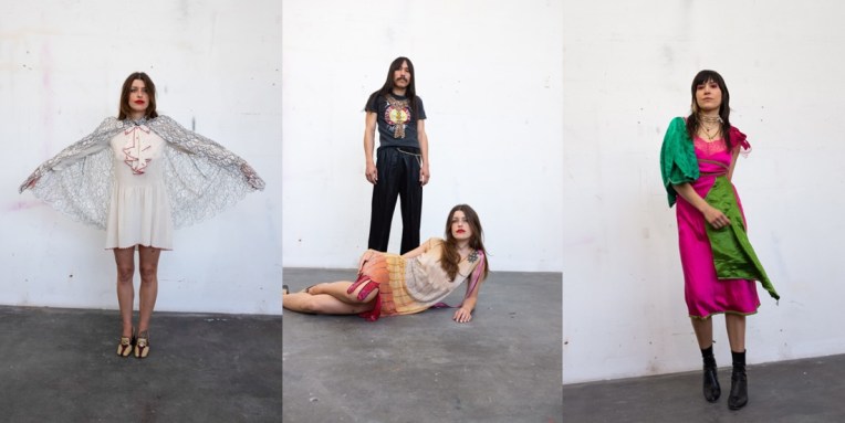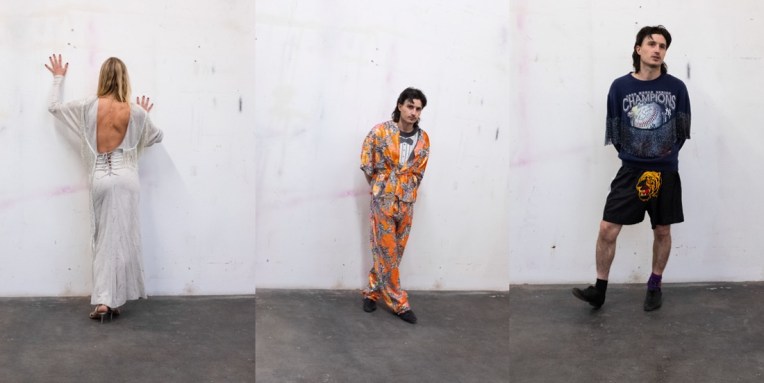 Imitation of Christ isn’t a regular fashion brand. Every single piece made (“produced” just doesn’t fit here) is one-of-a-kind. No pre-collections and no traditional business models, but rather spontainety and a sense of inspiring care-freeness is what prevails at Tara Subkoff‘s brand. And of course it’s one of the most ingeniously sustainable labels that exists. Second season in a row, Imitation of Christ’s upcycled collection is available and sold on The Real Real – and half the profits will go to Greta Thunberg’s Fridays for Future. Also, there’s no coincidence that the autumn-winter 2021 collection was presented on Valentine’s Day. It’s a reaction, said the designer on a call with Vogue, against “a Hallmark holiday or some consumer driven idea of romance.” Instead, the designer highlighted, the line-up (and the accompanying video) offers something “true.” The collection video, made in collaboration with Daphne Muller and Adam Teninbaum, is not for the squeamish. Though it features six hip Californians, a few of some renown, the piece is dominated by “a real 3D animated heart,” that is, admits Subkoff, “really shocking. We have this very strange idea of what a heart is, which is… really a cartoon version that we give to each other. We all have a heart pumping blood in our bodies and it pumps for a finite amount of time, then it’s over. And I think the more we understand that, maybe the more compassionate and kind we can be towards one another.” A similar feeling of compassion is present in the off-kilter garments. Subkoff has always had a penchant for beaded dresses from the 1920s, and these were back and looking fresh. Deco beading was applied to pieces for men and women, and this incongruity was perhaps best exemplified by the pairing of a gray utility suit with shimmering white bead work (there’s a well-considered Martin Margiela method in these de- and reconstructed pieces). Subkoff believes that what good you do in the world becomes an ever growing legacy. She’s been serious about sustainability for decades and hopes, through her actions and messaging, to inspire others to design and act sustainably (“Please, other companies or other people – copy this, do this,” the designer offered).