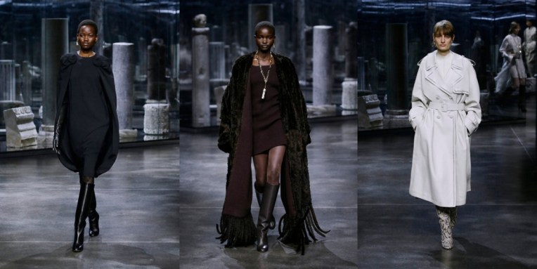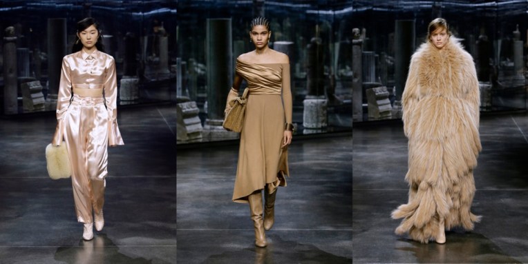 Kim Jones‘ first collection for Fendi, which was a haute couture line-up starring the designer’s friends like Demi Moore, Kate Moss and Naomi Campbell, polarised the audience. Surprisingly, his ready-to-wear debut wasn’t such noteworthy event – no big names among the models, and instead of some sort of Insta-extravaganza, we’ve seen a very classic, proper Fendi collection. Wisely, Jones neither committed himself to reflecting every aspect of the Fendi story, nor contained himself to narrowly defined elements of it. Instead he allowed the collection to unfold for the watcher as the city unfolds for the visitor, a multitude that coalesces towards the impression of a whole. The looks were all in neutral shades, both to reflect the mineral colors of the city and the organic shades that have dominated in Fendi’s history. Spaghetti-fringed furs in contrasting herringbone, striped silk shirting, and the opening loose-sleeved suede bonded mink evoked the period of Fendi’s first great flowering under the stewardship of the founders’ five daughters Paola, Anna, Franca, Carla, and Alda. It was they who recruited Karl Lagerfeld in 1965, and his great influence was stamped most clearly in a soft tote whose F-framed handle evoked his famous ‘Fun Fur’ of that period. Significantly, many pieces were punctuated with the 1981 ‘Karligraphy’ monogram. The biggest innovation here was the way the topic of fur was handled. The grandest fur on show was a long-haired fox whose raw material had been upcycled from previous pieces. Jones said of upcycled fur “that it is probably more challenging to work with for the artisans, but they enjoy being challenged.” He also pointed to the abundance of by-product shearling and added that his approach in this regard is to balance two questions: “What does the customer want and what can we do ethically?” Maybe this collection wasn’t overly charismatic or loud, but I bet it will do well in the stores next autumn.