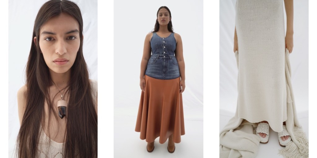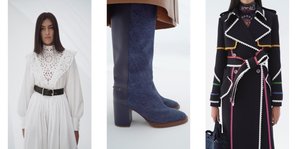 Gabriela Hearst delves deeper into the sustainable achievements of her Chloé residency, and it looks beautiful. Although I was not in love with Gabriela Hearst’s debut collection for Chloé, her next steps at the Parisian maison are promising. First, the direction of the brand’s Instagram, which is all about Zoë Ghertner’s raw, yet sensual photos of nature and female bodies – no aggressive product placement, no logo rebrandings, just idyllic visuals featuring poetic musings in the captions. Second, the resort 2022, which is a far better image of what Hearst vision for the brand really is. “We’re here on a mission,” she told Vogue, listing the impressive measures the house is taking to make its collections sustainable. If you came for the romantic mood boards and the classic tales of trips to the archive, this wasn’t it. “I haven’t gone to the archive,” Hearst said. “I feel like I’ve loved Chloé for so long and I have this idea of what it looks like. It’s not that I don’t respect what’s been done in its history, but I want the representation of what Chloé means to me to come out first.” Instead, the collection was an accelerated exercise in what we might discover to be our post-pandemic fashion mindset: What you wear is only as good as its social and environmental footprint. “We can’t deny what we went through on a global scale. Things are going to be different,” she said, referring to a cataclysmic year that shifted our understanding of environmental impact and made companies like Chloé – already on a sustainable path before her arrival – look to eco-conscious figureheads like Hearst. “Each collection is an opportunity to do it better,” she said. “I already did the least sustainable thing you can do, which is to have three kids.” In spirit, her proposal was geared toward those kids: the next-generation mentality Hearst says can’t come quickly enough. “We need to move out of the way and let them take over. They’re wired in a different way. They have a different perception.” In design, the collection’s Chloé-revering bohemian pragmatism reached out to generations somewhat older. Puritan-ish dresses were constructed in circular deadstock denim – with no metal, laser treatment instead of water, and recycled wood buttons – scalloped leather, and deadstock broderie anglaise. Linen trench coats trimmed with embroidered white edges demonstrated how Hearst might see a classic wardrobe staple through the instinctive Chloé lens she talks about. Blanket coats and fringed hand-spun dresses riffed on the hippie-esque references we historically relate to an eco-friendly wardrobe – not one for a cliché, Hearst likened them to techno dance parties. “Rave against the machine,” she punned, showing off a matching multi-color debut Chloé sneaker defined by its great, big stitches, every component created from recycled material. “I’m really attracted to product that feels handmade. I want to feel like a human worked on it.”