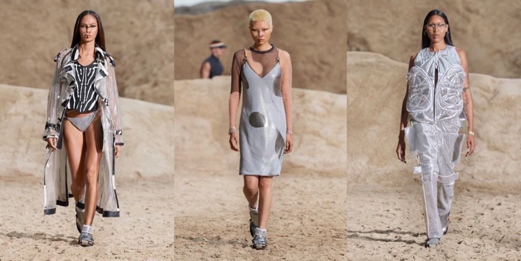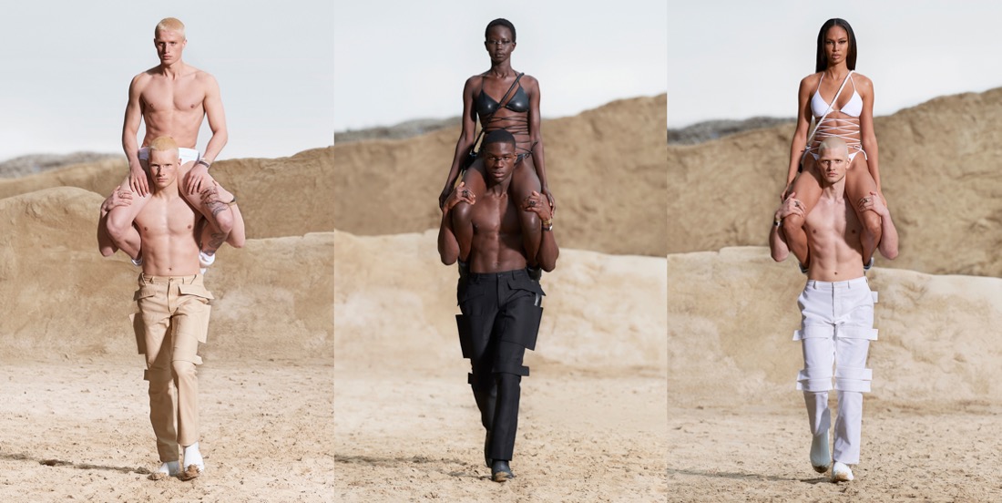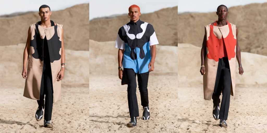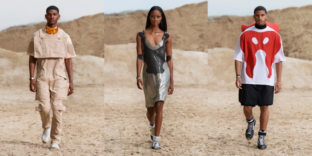It takes time for a designer (even a very renowned one) to find his voice again. Riccardo Tisci‘s first seasons at Burberry felt overdone and unedited. But lately, starting from his spring-summer 2021 collection, it seems he finally feels confident with his role at the British house and knows what his vision for Burberry really is. The spring-summer 2022 line-up is quintessentially Tisci: dark, sensual, sharp. Filmed in an urban desert landscape by the Millennium Mills in East London’s Royal Victoria Docks, Tisci’s men’s collection distilled the aesthetic so distinct to his career into his most personal Burberry show to date. There were trench and carcoat references aplenty, but in its pure expression, this was Burberry learning Tisci’s language and not the other way around. He hacked the sleeves off outerwear and re-sculpted it into warrior form, refined the raglan lines of sportswear, and managed to make a halter-neck silhouette look hunky. Combatant chest plates continued those conversations, some reduced to just a ghostly outline on a T-shirt, while the exaggerated straps of workwear conjured visions of skeletons and rib cages, bringing back those delectable Memento Mori or Día de Muertos images Tisci’s work so often evoked in the past. Lifting each color of the Nova check, he covered the whole thing in a thick, luxe, dusty blanket of beige, white, red, and black, with sky blue nods to “the only thing we’ve been able to watch” while trapped lockdown. His interpretation of Burberry’s codes – deconstructed but refined – felt so authentic to his ethos, you wondered why he hadn’t taken this route sooner. “It takes time for a designer to find the right fit when you’re working in a company. For people outside, it seems like you just go there and…” he paused. “It’s an interesting process. The bigger the team, the more interesting and tough and difficult it is. So, it’s good that we’ve arrived here. After three years, the identity is getting clear.”The pandemic has also changed Tisci’s outlook: “I feel at home, even if I’ve been in lockdown. The world is going to restart, and for me, this was fresh. It’s what we want today: expression, freedom, physical freedom; to be ourselves. It’s punk in a positive way: breaking the boundaries.” Watching the world come back to life – “and the young generation pulling crazy looks again!” – Tisci was reminded of his early twenties when he escaped to India and had his eyes opened to another reality. “I remembered my first rave in India, with Shpongle, one of the best DJs in trance music,” he said, referring to the group that also scored the show, “partying in these open spaces, with all this nature, with all these young generations from around the world, being myself and expressing myself. I come from a poor family, but raves were somewhere I could express myself and be on the same level as everybody else.” Imbuing his collection with those memories of rave, it was as if that scene was once again giving Tisci a place to freely express himself.