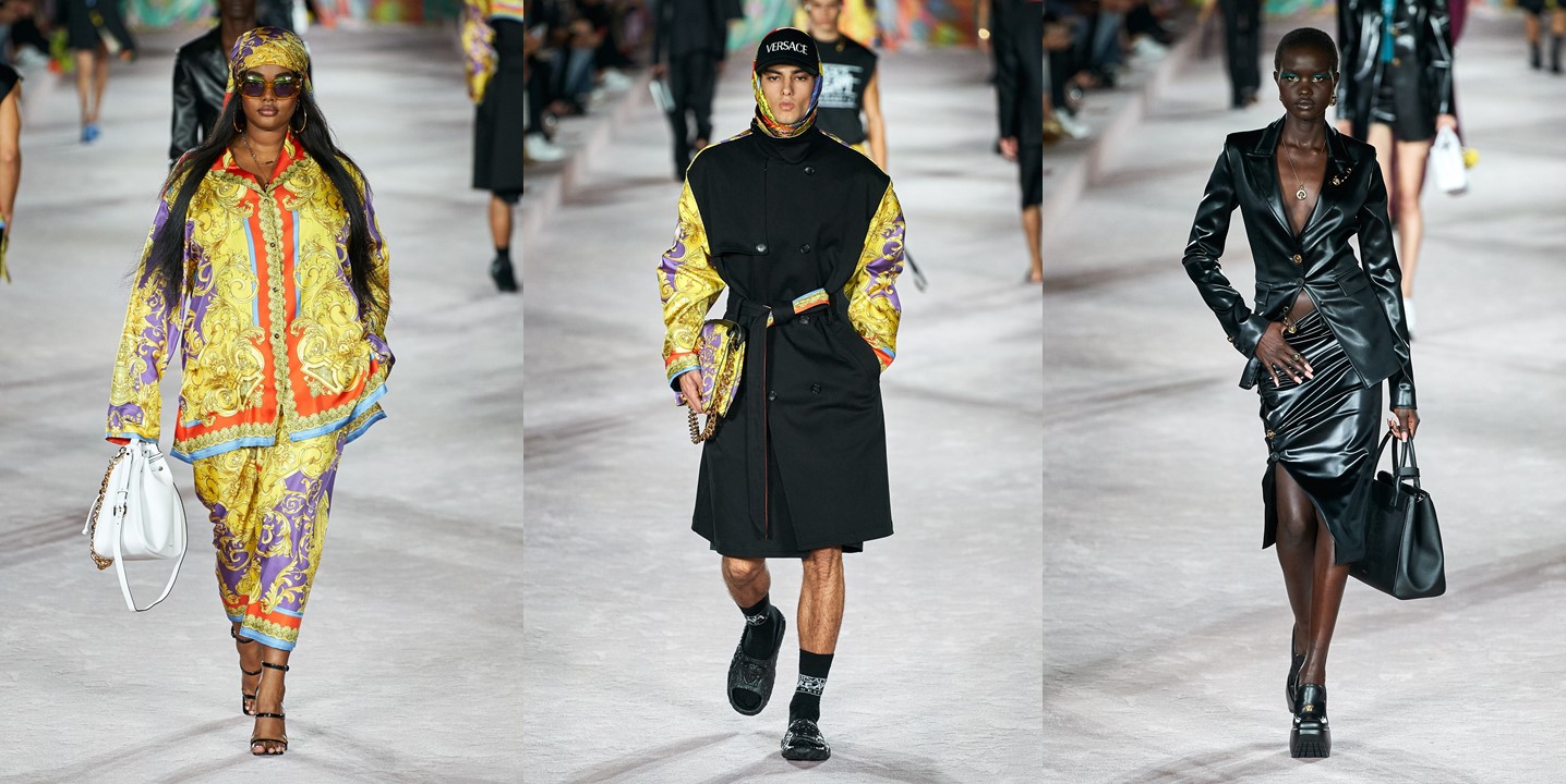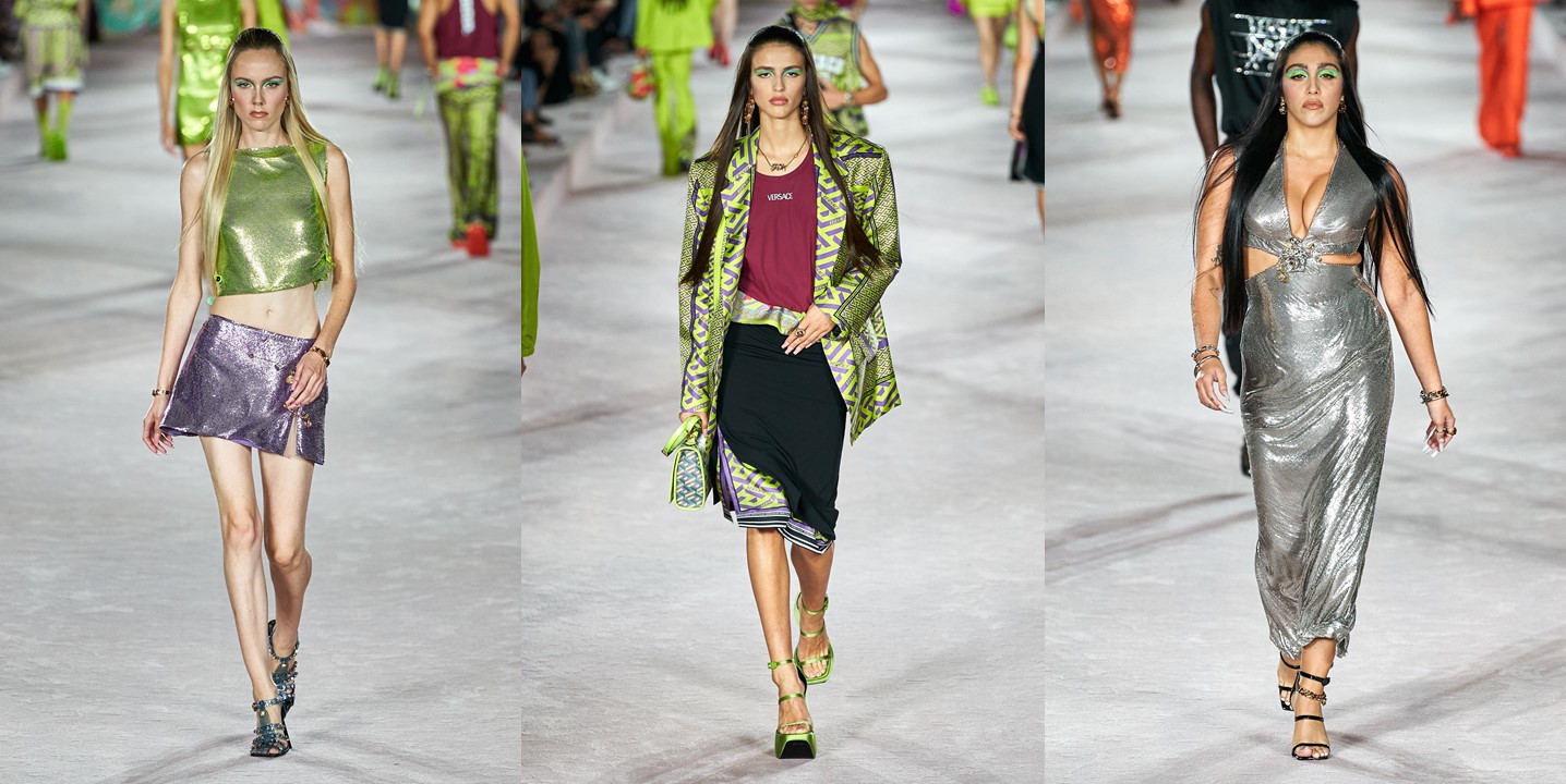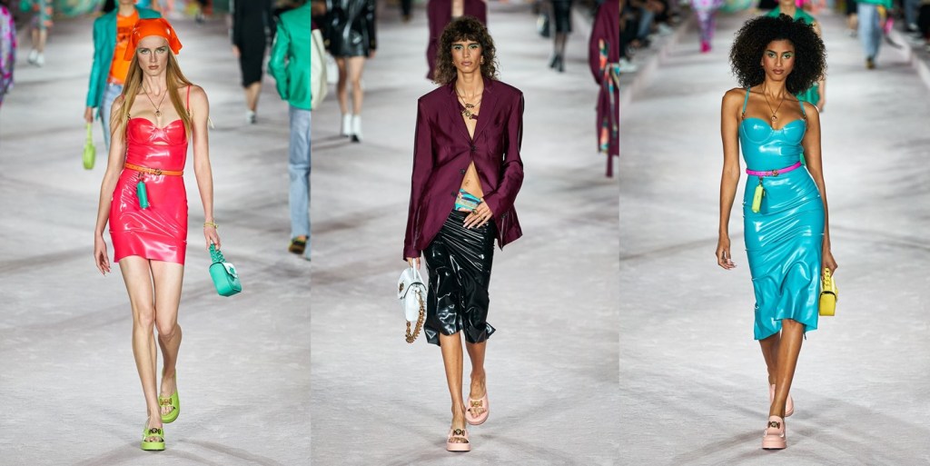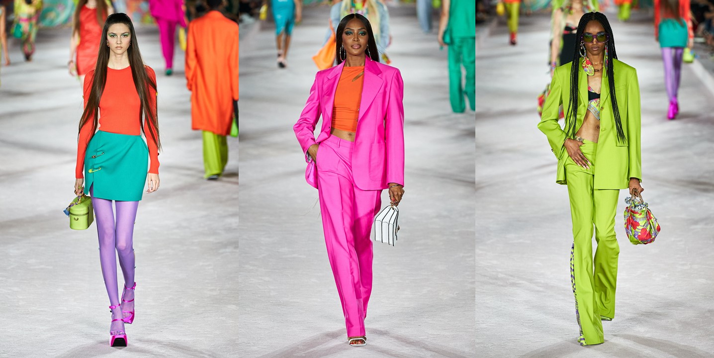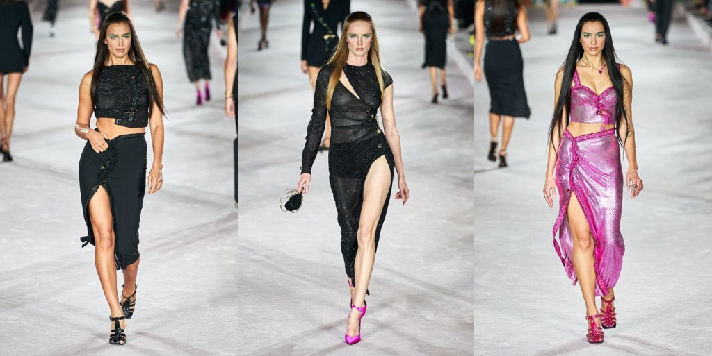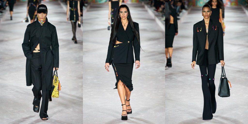 Versace is thriving. The confluence of Dua Lipa, Naomi Campbell and Lourdes Leon on the spring 2022 runway almost broke the internet. It definitely crashed Versace’s website momentarily, so heavy was the traffic to its livestream. The scene outside the Milan venue was just as frenetic, with young people lining up for in-person sightings. Donatella Versace knows how to capture the world’s attention. The collection was a bright, shiny revival of Versace’s many hits, aimed straight at the heart of the TikTok generation — young people for whom Dua and Lil Nas are household names, but who may be less familiar with the supermodels who helped propel the brand to fame 30 years ago. Naomi Campbell, though, was in the house to help show the new-gen models how it’s done. Dua opened the show in a cut-out jacket and slashed skirt tricked out in multicolor versions of the house-famous safety pins, and closed it in the even more iconic chain mail, dipped hot pink for the occasion. In between, Versace kept things young and playful, showing basketball silks and pajama sets in the archival Medusa print and the new La Greca print, and using the patterns for accents: a handkerchief top here, a bikini top there, and as patchwork on baggy faded blue jeans. The color palette was pure pop: a long run of Miami neons was bookended by sections of black, with a brief segue into collegiate red that featured what might be Versace’s first varsity letterman’s jacket. These clothes would be right at home in Miami, not least of all Imaan Hammam and Kiki Willems’s vinyl bustier dresses. In addition to Donatella’s Milano triumph, yesterday evening, the rumors materialised into an IRL collaboration with Fendi’s Kim Jones and Silvia Venturini Fendi. And oh my, this was the moment we’ve all waited for this fashion month.