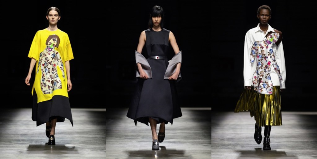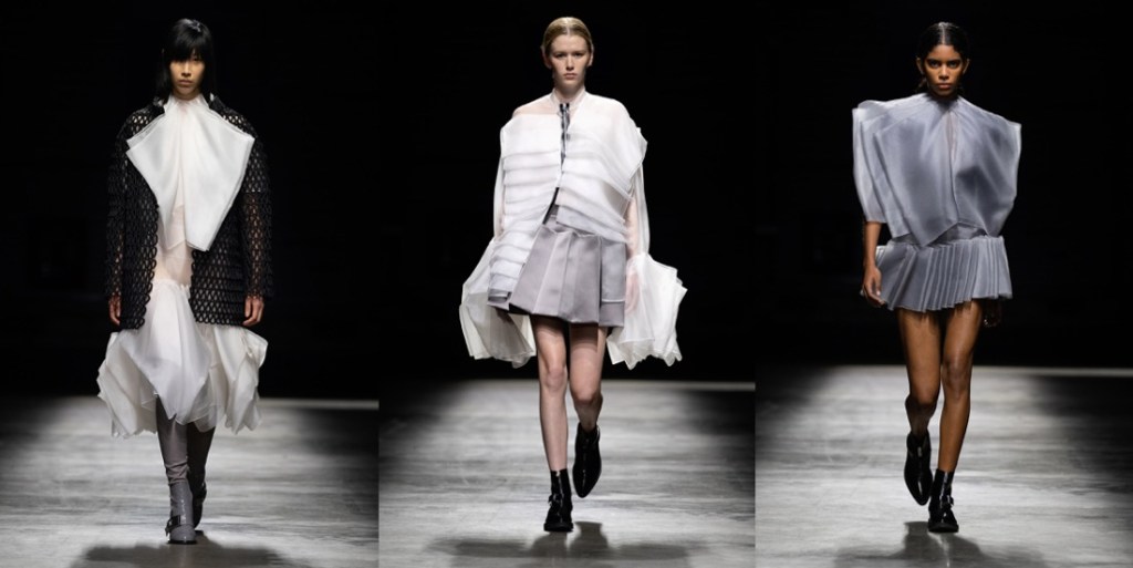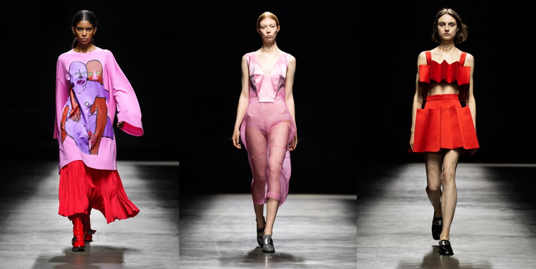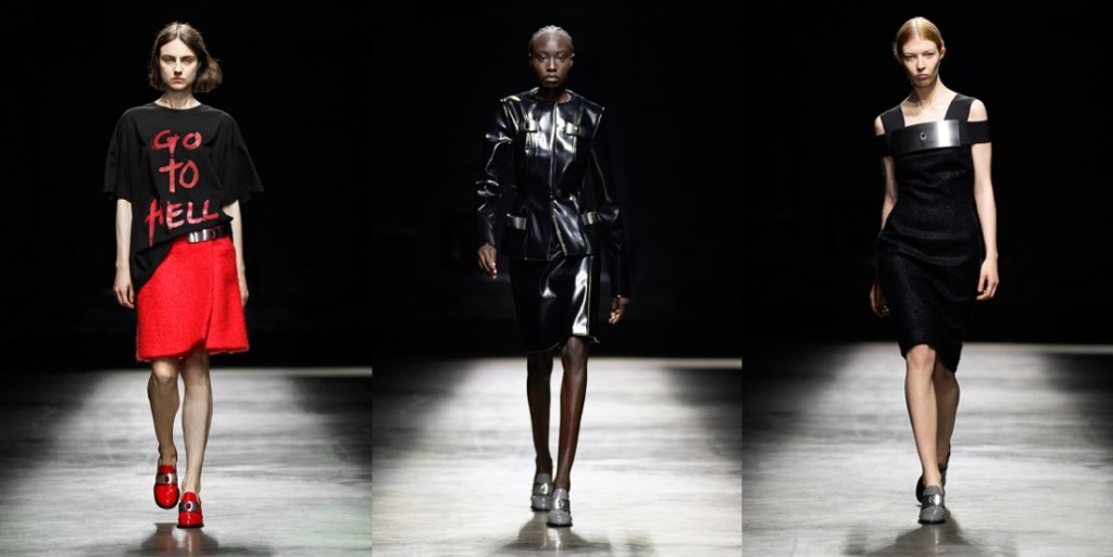 This might be the season of “sexy”, but nobody does sex in fashion like Christopher Kane. Never vulgar, but always elusive, enigmatic, multi-faceted and exciting. For spring-summer 2022, the designer shot a show in a darkened London warehouse a couple of months ago and released in the middle of Paris Fashion Week. It opens with strong, black patent: straight to the point of a furious kind of erotic chic. Kane girls don’t necessarily want to serve things up on a plate: his talent is for designing ways that play wickedly with all kinds of covert suggestions. Right through the collection there are devices for revealing skin – necklines in little black dresses that hint at fetish but are banded with protective metal; unconventional slits or port-holes in otherwise perfectly proper, covered-up dresses; a sporty crystal mesh miniskirt with a zippered slit. Kane experiments with form, too – and that leads to all kinds of modern-looking techniques. One this season is his play with corrugated shapes – like a scarlet bra top and matching skirt armored with zig-zaggy 3D geometric frills. The thing is, you never quite know where Kane’s references come from – but his career-long insistence on short, leggy going-out dresses means a glut of choices for original-minded girls who are finally, finally out and about at parties and whatnot. One of the inspirations he did allude to is the life of ’50s sex-bomb Jayne Mansfield. She of the overspilling breast – a controversial star who blatantly flaunted her sexuality and incredible body at a time when all that was highly disapproved of. You glimpse her energy behind a diaphanous dress with a pink satin bra formed into sharp geometric satin points: provocative, yes, but also armored with self-confidence.