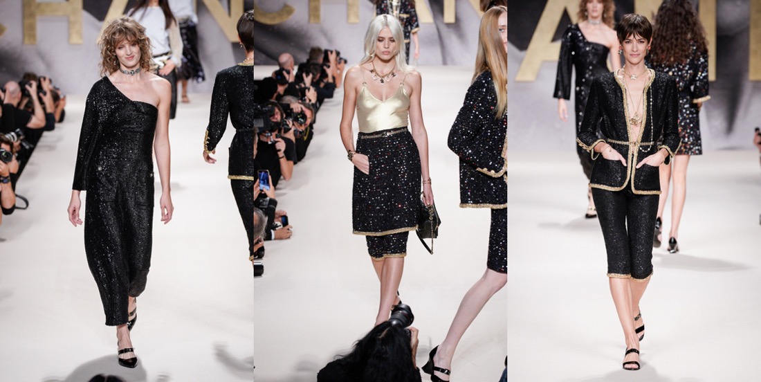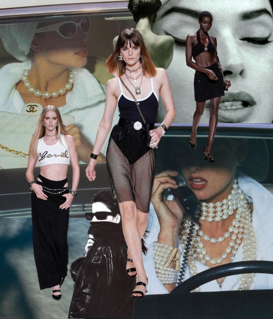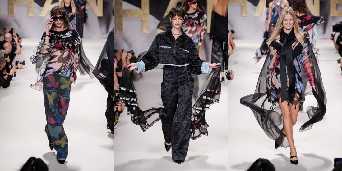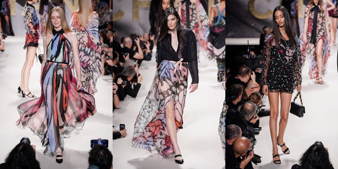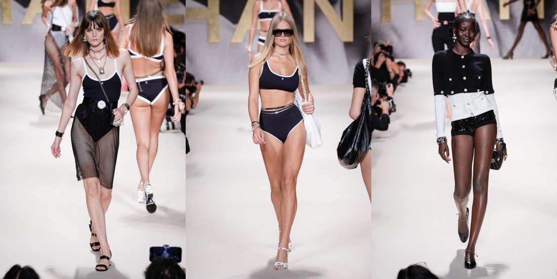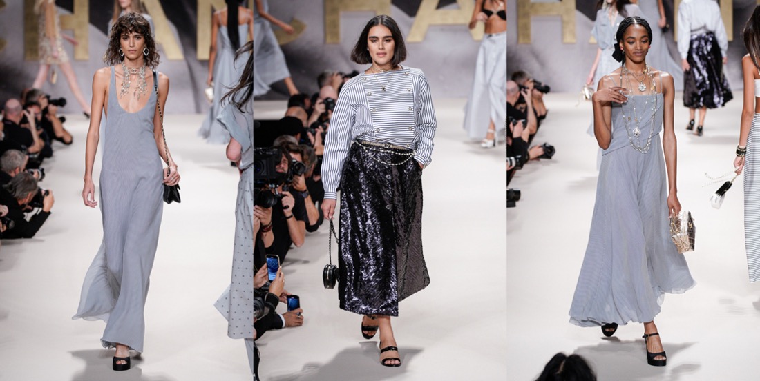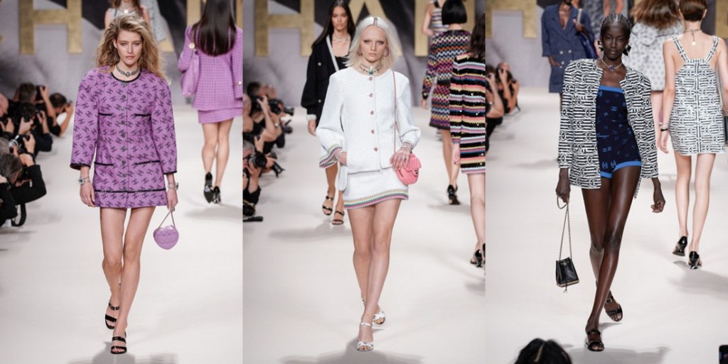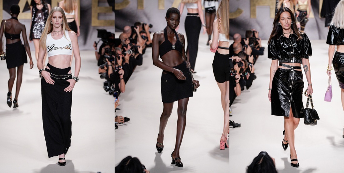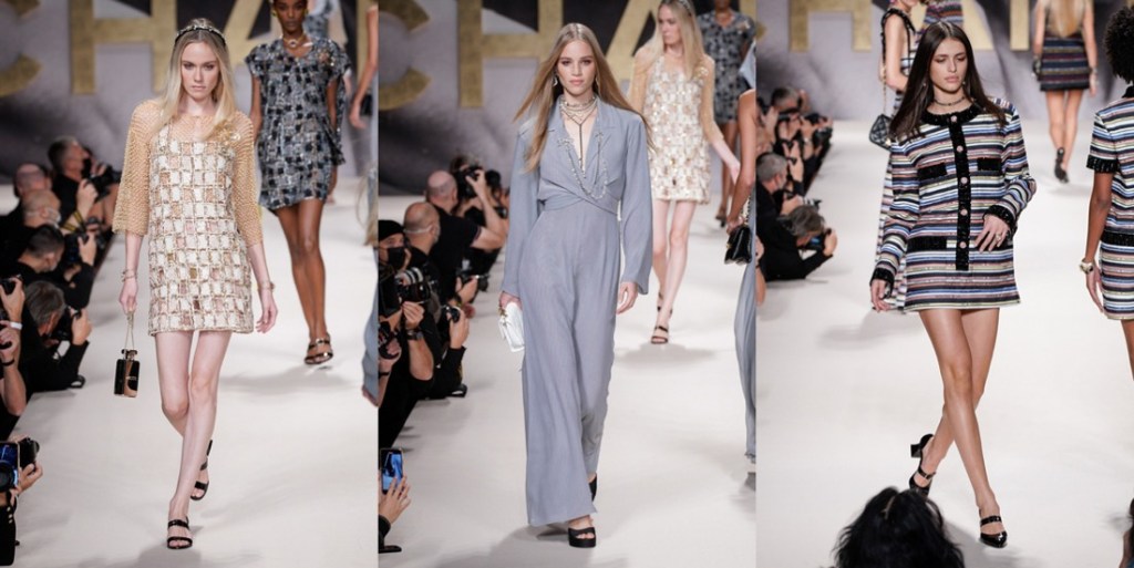 For spring-summer 2022, Virginie Viard delivered us the pure essence of Chanel – especially the 1980s-slash-90s one. If not for the contemporary models, you could mistake this collection with a 1992 line-up. Back in the day, supermodels came bounding down the high, raised runways exuding joie de vivre as they twirled and vamped for the photographers who had jostled for prime position, not only in the mosh pit at the end of the runway, but all along its length. Viard wanted to replicate that ambience, and she succeeded. “I used to love the sound of flashbulbs going off at the shows in the ’80s,” the designer recalled in the press notes. “I wanted to recapture that emotion.” Viard attempted to channel that energy and joy in a collection that not only referenced the era in the clothes, staging, and accessories (purses shaped like N°5 bottles; piratically flared Louis heels), but even the soundtrack: George Michael’s anthemic “Freedom! ’90” – in a contemporary cover version by Christine and the Queens – got the models in the party spirit. At the end of the raised runway, for instance, the photography duo Inez van Lamsweerde and Vinoodh Matadin, now deeply enmeshed in the Chanel world, played old-school show photographers, snapping the models who stopped to pose and preen for them and seemed to be having the time of their lives, flashing smiles and flicking hair rather than assuming the habitual look of sulky disdain. The show also opened à la Karl Lagerfeld – who sent shock waves when he put Chanel-branded underwear as outerwear on the runway for spring 1993 – with a black-and-white sequence of briefs, swimsuits, and sports bras, occasionally veiled in spangled black net pants or shown with above-the-knee skirts. During an accessories fitting a couple of days before the show, Viard pointed out the crocheted effects she had worked on with braid company Bacus, and the spin on the bright spring pastel tweed suits – think of Chanel-clad Naomi, Linda, and Carla, shot by Steven Meisel for Vogue, March 1994 – that she had given the twist of a longer skirt or jacket flap in back, suggesting a traditional tailcoat. “Karl was always doing fake jeans,” recalled Viard, shuddering at the memory. “In the ’90s they always seemed to be with pink tweed – ugh! For me it was horrible then, but now j’adore!” Her own reimagined denim propositions this season included a pretty, summery deck-chair ticking stripe cut into stiff little 1960s-looking dresses with bold bands of black sequins, creating the trompe l’oeil illusion of a classic Chanel cardigan suit, and charcoal denim wafted with a butterfly print. Those butterfly wings were amplified as prints on drifting chiffon pieces that swirled as the girls twirled, providing another charming throwback to a moment that celebrated the happiness the fashion flock is feeling in a season of cautious reemergence and optimism.
