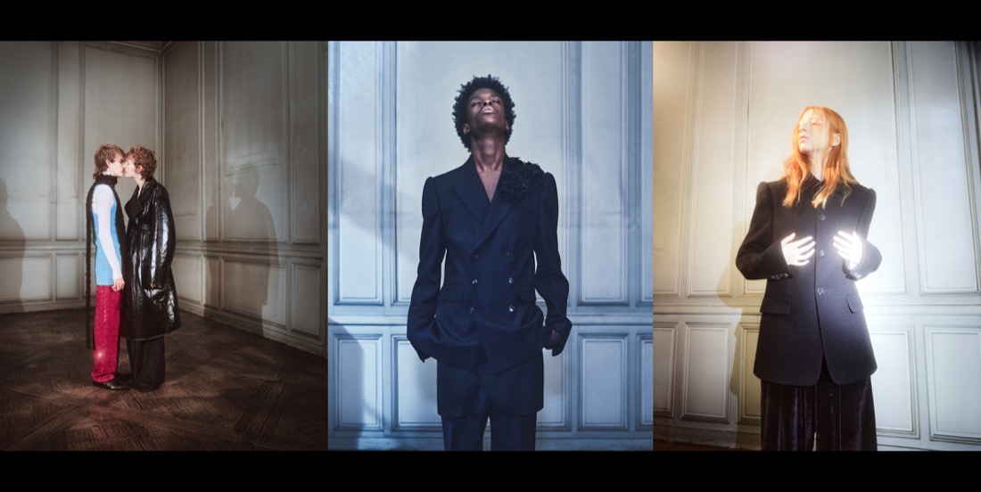 While many designers have now returned to live shows, Dries Van Noten doesn’t want to do a show until the pandemic ends (or at least, it’s finally under control). He spent the season thinking about how the restrictive conditions are affecting his team. “A lot of young people don’t go out anymore, they don’t see a lot of people. Touching each other, making love to each other… it’s changed. I think it’s a collection where you really feel what state we’re in, and what we’re longing for. That is the desire we wanted to explain: the frustration,” he said on a video call from Antwerp. Shot by Casper Sejersen, Van Noten’s autumn-winter 2022 film featured a bunch of models getting tactile in a big mansion in Paris. There were close-ups of three real-life couples kissing: two men, two women, and a man and a woman, who all embodied the designer’s genderless objective. “I wanted to make it even more than gender-fluid, so you don’t even think about what’s menswear and what’s womenswear. In this collection, there are as many women’s elements as men’s elements,” he said of the wardrobe, an unrestricted mix of sequins, glitter, embroidery, and transparency with traditional wools and sportswear elements. “There’s a little bit of sex, maybe, in the whole thing. It’s a surreal beauty, a raucous beauty – not a normal beauty. A very strange beauty. Just beauty-beauty is pretty, and I don’t like pretty. I think that’s boring,” Van Noten stressed, explaining the gender-bending quality of the collection had a lot to do with his investigations into truly genderless cutting. The raucous beauty Van Noten wanted to convey was there in the sort of tattered glamour he’s been practicing for a while now: wardrobe constellations that look a little bit like something you’d find in a thrift shop in a clubbing district in the 1970s; a helter-skelter of patterns, textures and partywear that feels somewhat psychedelic. “It’s not like, oh, let’s surprise people, let’s put a feminine thing on a guy. No, we don’t think like that anymore. There’s a freedom, which I’m happy with,” he reflected. “We combine everything in a very spontaneous way.”