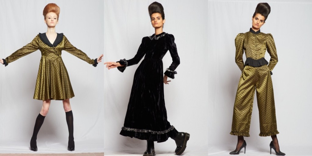 “It’s big, broad, and for everything she might want to do,” says Batsheva Hay of her autumn-winter 2022 collection. Her blooming label is no longer just about timeless prairie dresses. Now she has pushed her aesthetic into housecoats, and sweatshirt skirts, and pajama sets, and quilted vests, and blouse and skirt sets, and tiny scalloped edge knits, and… well, you get it. Hay is putting her twist on almost every category, denim to debutante dresses. It might read as a commercially minded play, and, yes, more clothes means more opportunity to expand the business, but as Hay tells it, this season was really about taking all the her friends and customers have been giving her for years. “People always send me pictures of Sharon Tate’s wedding dress,” she says, “so finally I just made one.” Her take is denim with dusty rose velvet trim. For those who want body-con, there is a tight maxi dress covered in funny crochet granny squares. Simplicity seekers have asked for black: now Hay has her most streamlined, no ruffle black velvet dress with vintage ribbon trim. A gray cardigan with hand-crochet trim is a tip from Jenna Lyons, who advised Hay to just remake all her popular blouse shapes as knits. The many velvet coat-dresses, with prim bows and sweet little hoods, are Hay’s advice to herself: something cute and sweet for all weather. The glue that binds her diverse work together is her own sense of quirky weirdness. Of the grandma-style florals she says “you need something a little repulsive!” Not abandoning her weirdo sensibility while being able to expand into new realms is her great strength.