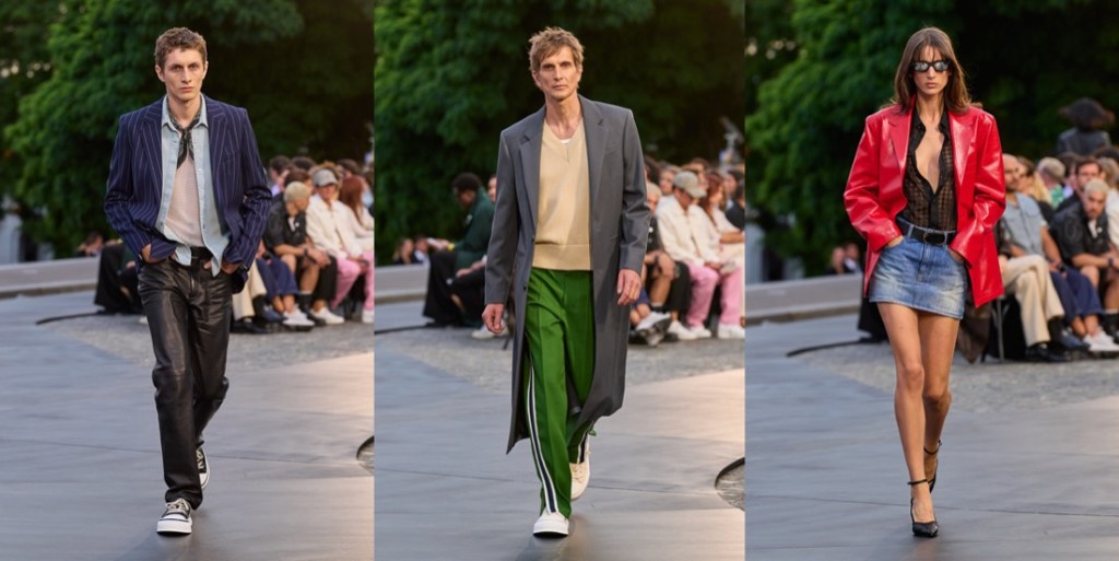 For spring-summer 2023, Ami went for the timeless, effortless and somewhat cliché, but always très cool theme: the Parisian chic. For the fashion show, the guests were at the top of Paris, in the grounds of La basilique du Sacré-Cœur with the city laid out below, gleaming in the sunny dusk. Catherine Deneuve and Carla Bruni were in the audience alongside Naomi Campbell and Jonathan Bailey. Extraordinarily, Audrey Tautou – Sacré-Cœur’s Amelie herself – was lured out of her long public retreat to open the show. Other key cast members included Liya Kebede, Karen Elson, Precious Lee, Cara Delevingne, and Kristen McMenamy. We were in menswear week, yes, but hey. This was a power play as well as a Paris play. Ever since budget has allowed, Alexandre Mattiussi‘s shows have been elaborate, but last year Mattiussi took a clearly very significant investment from Sequoia Capital that ratcheted up the production values several levels tonight. “They’re young, cool, easy, and they let me do whatever I want,” he said: “they are super supportive.” This was reflected in the casting, the location, and the after-party, but also, most crucially of all, in the clothes. Ami was an exclusively menswear label from its founding in 2011 until as recently as 2019, when it expanded into womenswear. Mattiussi expanded his Ami wardrobe – the presentation of carefully idealized observational fashion via looks and pieces based on real Parisian types and stereotypes but then applied with a cleverly restrained patina of enhancement. There was a formidable array of bags, a new category, and shoes all intricately detailed with the logo that Mattiussi first doodled as a student. Multiple dialects of bourgeois archetype were gently mashed together to create a beguilingly approachable and good-natured French wardrobe. “It is still about sharing the values of love, friendship, fraternity, and kindness. And not trying too hard. This is what is natural for me as a person and designer. And it is a postcard again – the latest episode of Ami in Paris.”