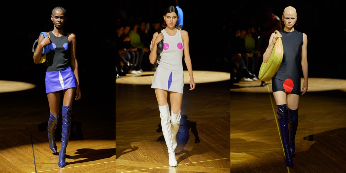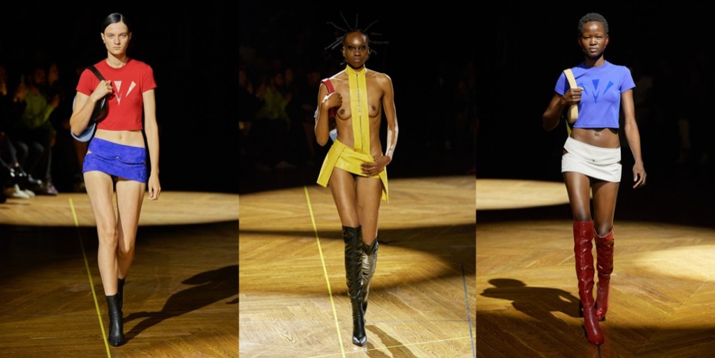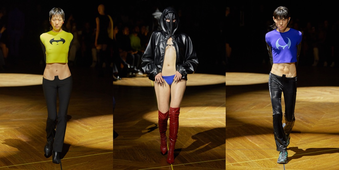 When Mowalola Ogunlesi appeared for her bow after a three-year runway hiatus, the room roared. Ogunlesi has a strong community of fashion lovers who love her – even outside her physical show space, her legions of online fans offered an outpouring of support. That passion bleeds into Ogunlesi’s clothing and her first solo show after participating in Fashion East for several seasons. “Before, I would cut myself off from expressing in certain ways because I thought I shouldn’t do that,” she said before her Paris debut. But the designer learned that “whatever feeds me, I should just do it.” What was feeding Ogunlesi this season was thievery and evolving her aesthetic beyond the trenches, tees, and accessories she is known for. She titled her collection “Burglarwear,” inspired by all types of criminals, from kidnappers to stockbrokers to the priesthood. There were literal renderings of these themes – the show opened with a yellow leather cross harness, closed with a beautiful sheer cross-embellished veil worn over a nude body, and Wall Street suits were cropped to Mowalola proportions in between – but her most interesting propositions were her distortions to the human body. Sexiness has been a staple of the Mowalola look since the inception of her brand – backstage before the show she expressed frustration about gendered views of sex appeal, “that’s why I have women showing nipples and men showing nipples,” a pregnant model in a beaded dress and a male model in some of the lowest rise pants seen this season. But rather than just show off the body, she reshaped it. Inspired by the way kidnappers would zip tie wrists – “the same position if you are wearing handcuffs,” she said – she created garments that held arms clasped out in front. The best was a white dress that pointed the model’s elbows up to the heavens. “I like the idea of weaponizing clothes, weaponizing shoes, weaponizing shoulders, weaponizing elbows,” she said with a smile, “Even my bag… sometimes I have to use my bag as a weapon.” Living as freely and expressing as purely as Ogunlesi does, sometimes require fighting for a space in fashion. She’s definitely up to the task.