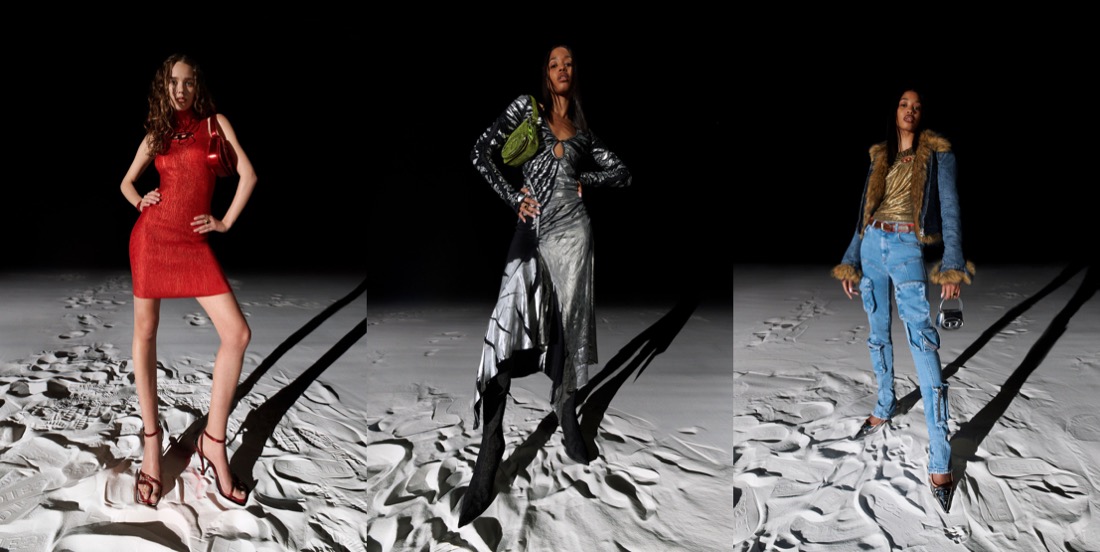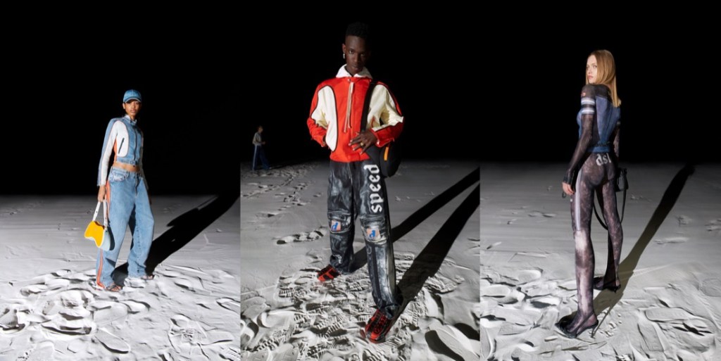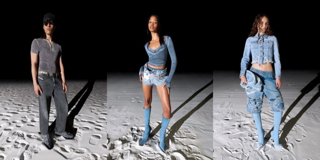 From sustainability to Julia Fox, Glenn Martens’s first 18 months at Diesel have been dedicated to aligning the 1978-founded denim disruptor with both the deeper values and shallower preoccupations of now. In this resort 2023 collection he continued that mission through a further two-pronged emphasis on the serious and the superficial, with both sides of that binary expressed via Martens’s expertly twisted aesthetic. The serious bedrock continues to be in expanding the sustainable operations of this hybrid house. A reconfigured, jersey-specific core line named Diesel Essentials will from this collection forward be made from all-organic cotton, trimmed in recycled materials, and finished with “low impact” treatments and prints. Prime examples here included a fluoro trio of ruched asymmetrical skirts worn under a hoodie, tee, and turtle. On the side, Martens expanded the recently-launched Diesel Rehab Denim capsule – made from denim off-cuts, recycled cotton, and recycled elastane – into pieces including the season’s decadently pocketed utility pants and padded jackets. He added that a for-now exclusively Italian pilot scheme to buy-back and repurpose vintage Diesel through resale or upcycling is showing promising results. This responsible practice lends Martens’s Diesel ample clear-of-conscience wiggle room to play around with the brand’s ethos, which he said is: “to have fun, enjoy life, and be successful in every situation that you are in.” Highlights for sybarites included trompe-l’oeil bumsterish cut jeans for women and men, those ornamentally utilitarian pieces, acres of (sustainable) distressed and sometimes-waterproofed denim, retro-futuristic and logo-heavy clingy metallic knit dresses, gothically scripted skintight motowear, and a surprising diversion into tailoring. With Martens at the helm, Diesel has in short order pretty much defined its new manifesto of sustainable semi-seditious sexiness.