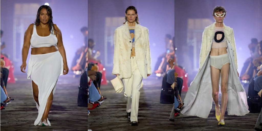 The appearance of Italian brands on the New York Fashion Week schedule brought major action to the city. First Fendi kicked off the fashion marathon. Then, Marni‘s Francesco Risso delivered one of his finest collections for the brand to date. Making Marni’s NYC debut on a Brooklyn street nestled under a bridge, the trains audibly rumbling overhead, was a natural step for Risso, who has appreciated the city’s creative spirit for years. Everyone from Paloma Elsesser to Tyler Mitchell to Lara Stone appeared on the runway; a cast of models and friends walked to a live soundtrack written by Dev Hynes and performed by the String Orchestra of Brooklyn. Gorgeous, hallucinogenic, searingly bright colors; distressed mohair; papery leathers; mystical cobwebs of beads; and psychedelic panne velvets, the pieces punctuated every now and then by enormous and the chicest-ever squashy courier bags, their no-nonsense utilitarian shape turned off-kilter by their puffy aeration. The collection was a signature Marni line-up, but also felt very new-gen New York. “I’ve been wanting to explore for a while,” Risso said. “It means understanding things from a different perspective, connecting with different people. It feels refreshing. There’s a lot of learning as well, and I’m up for that every fucking second. Ever since America opened its borders last December I’ve been here, I don’t know, maybe 20 times. Still,” he went on, “it’s not really news, because everyone is out in some other realm in some way or other.”