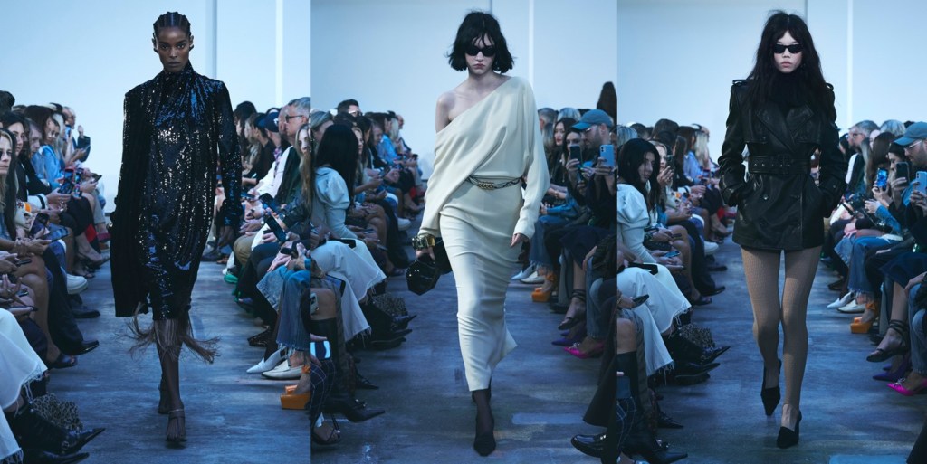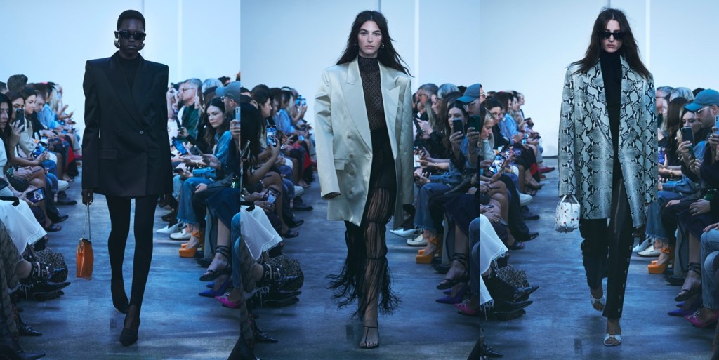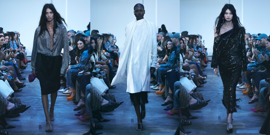 Khaite is now one of New York’s must-see brands. Celebrities jostle for seats and, editors are eager to buy and wear it. Catherine Holstein knows her audience. “That independent, New York, strong, stealth woman – that is who I’m designing for,” she said backstage of her spring-summer 2023 show. For spring she sent out her dependable mix of sequins and silk fringe, leather and denim. Because she was looking at the 1990s films of David Lynch, Wild at Heart in particular, there was a good amount of python print. Nicolas Cage’s character wears a python jacket in the movie; Holstein stamped the pattern on leather for exaggerated bombers and pencil skirts, and silk charmeuse for a voluminous peasant dress. A little python goes a long way, admittedly. The other novelty here was bubble skirts (a trending item this week). Their horsehair reinforced waistbands sat at the crest of the hip bones below everything from a mesh bustier to a crystal embroidered shirt. The low waistlines gave those outfits a cool attitude – polished but not pretentious. Because Holstein is designing for herself and for women like her, she’s got the attitude aspect nailed, but that’s not to diminish her eye for proportion or the exacting lines of her tailoring. A strong-shouldered, elongated jacket with crystal-studded lapels was a looker. You’ll be seeing it around next autumn with a tie-neck silk blouse and jeans and those little sandals.