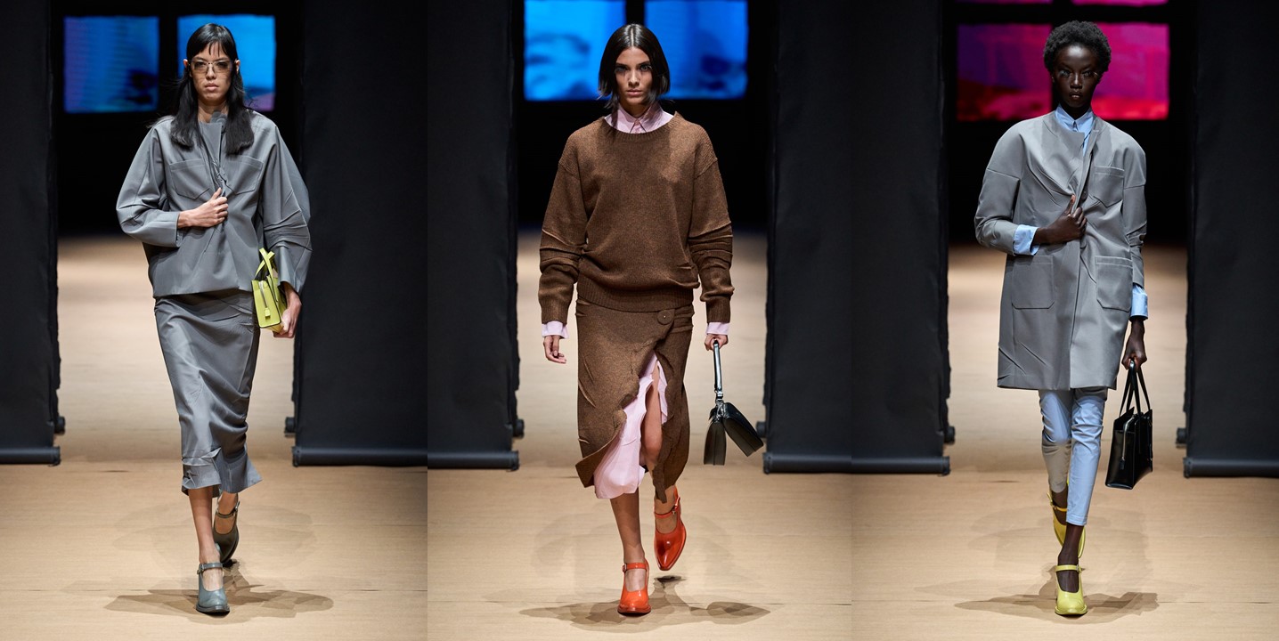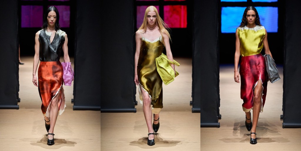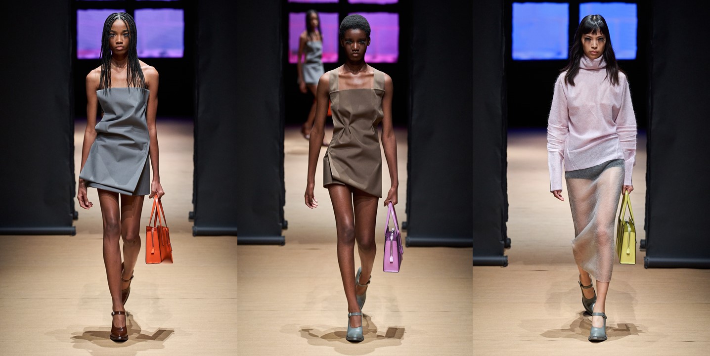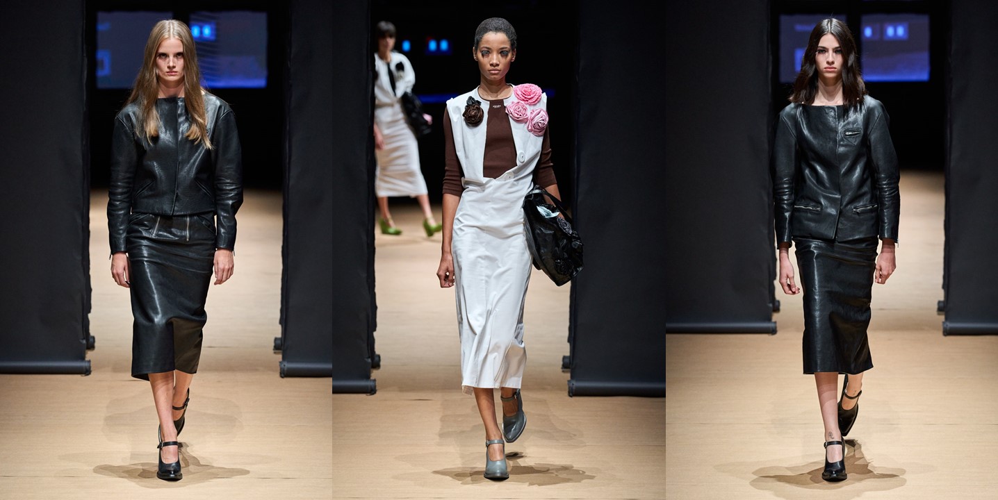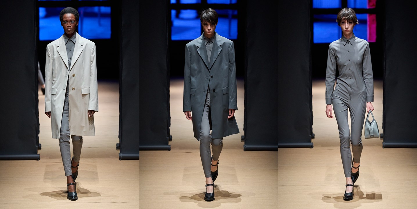 Finally, after two and half (fashion) weeks, a truly brilliant collection. Of course, it had to be Prada. Spring-summer 2023 might be the most sensual offerings to date coming from the creative dialogue between Miuccia Prada and Raf Simons. At a first glance, one might find it very simple, even straightforward. But the more you dig into the details, into its raw, yet cinematic effect, and the oddness of silhouettes and lenghts and material clashes, you realise that another word describes it better: “crude”. For the show, the Prada Fondazione was covered in black craft paper. Cut into the set walls were windows behind which short videos by the director Nicolas Winding Refn fame played: clips of a coat on a wooden dining chair, an empty kitchen, women in repose on couches. Were these scenes of domestic bliss? Knowing our protagonists, and understanding the two years we’ve all been through, that doesn’t seem likely. Instead, what Miuccia Prada and Raf Simons seemed to be after was some sort of truth – peering behind the curtain for a glimpse of reality or its close verisimilitude. “There is a sense of the life of women,” Miuccia Prada said in a statement. “Life and humanity crafts the clothes – not superficial embellishment, but traces of living, leaving marks. This idea of clothes shaped by humanity excites us.” The first look, in its corporate anonymity, seemed to belie that statement. Where’s the humanity in a dour gray top coat and lighter gray button-down onesie? But before long, the layers came undone. The boxy tailoring of that coat, for example, was replaced with an old-fashioned nightie, the familiar logo triangle embroidered on its tulle neckline. Picking up on the craft paper of the set, they used paper – “the most simple, modest material” – for dresses whose color and print didn’t quite meet the edges. These were the most thought-provoking pieces in the collection. The white outlines at necklines and hems gave the sleeveless shifts an unfinished, work-in-progress quality, like an artist made clothes out of a freshly painted canvas, rather than putting it in a frame. Clearly, Miuccia had her autumn-winter 2004 collection as the reference, where a similar technique was used for dresses and coats. Knit sweaters and skirts, meanwhile, came pre-creased in places, and the skirts’ slits were left raw-edged, with the slips underneath following the same almost ragged lines. The white nighties and peignoirs over black briefs and the icy silk duchesse dresses tapped into beloved parts of the house archives. Trained for decades to see Mrs. Prada as fashion’s fortune teller, a mostly silent arbiter with an outsized influence, we come to Prada shows eager to know how we’ll want to dress next season. On that topic, the house founder and her partner had a new idea, and it goes back to that skinny legged, stripped of all excesses all-in-one. Many designers are thinking wider and fuller for spring – the overwhelming vibe is go big or go home. But here the silhouette was tapered to the ankle and punctuated with a boxy coat or jacket and chunky cowboy boot mary janes. A new Prada uniform? In his own comments, Simons said, “more than any other collection, this one is filled with different views… different bodies of work, within a single body of work – shifting between disparate form languages.”