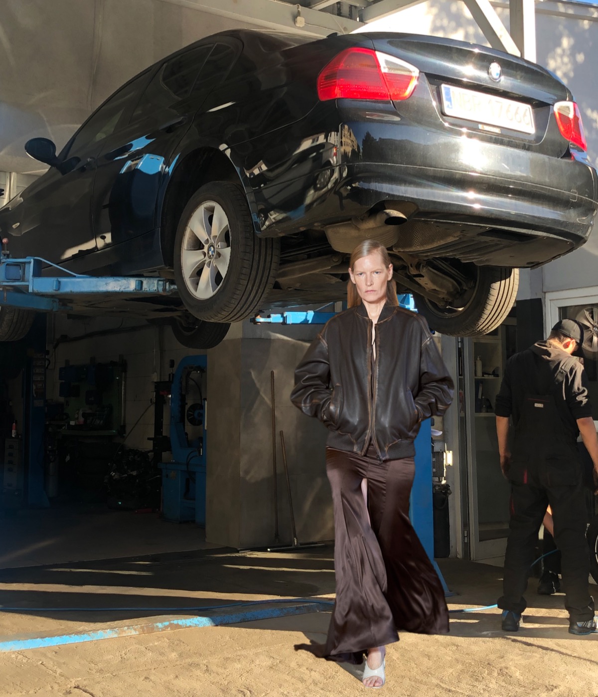 Serhat Isik and Benjamin Huseby‘s vision of Trussardi takes shape with the designers’ second season for the Italian heritage brand. Presented in the gilded salons of Palazzo Clerici, the spring-summer 2023 offering gave hints of how they’re easing into their role, after a strong first outing which was a break with the past, clean to the point of subversion. “This time it was more about trying to develop a wardrobe that makes sense for Trussardi,” they said backstage. “It may sound boring, but we’re bringing our own vision, mixing modernity with history.” Digging into the brand’s archive was “excavation work,” they explained. “There’s lots of richness there – the exceptional leather work, the ’80s and ’90s sexy and cinched silhouettes, the sensuality, the femininity, but also a masculine glamour.” Some of these elements were brought back for spring. Sensuality was played out in fluid dresses in liquid jersey with twisted necklines and cascading hemlines; floor-length satin gowns were wrapped around the neck, draped and ruched; slits and cut-outs opened to reveal bare skin. The best representation of leather work was a faux embossed crocodile bomber, round-shouldered and cinched, paired with a ruched miniskirt. The designers also tried their hand at denim, one of the house’s signatures, offering sculpted pieces glamorized with crystal appliqués. “It’s a learning process,” they offered. “Absorbing and adapting to the Milanese culture is a sort of anthropological exploration. We’re learning to work with things that we don’t always like, or which make us slightly uncomfortable. Our view of history isn’t linear, rather it’s often chaotic“.