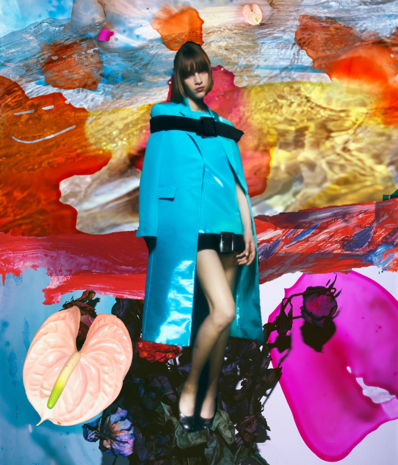 No one does “sex” and “sexy” like Chistopher Kane. His pre-fall 2023 is yet another reminder that the London-based designer owns this territory. The collection’s main character is a buckled strap. Broad, big, buckled straps are bound around the shoulders, necks, and hemlines of mini-shifts and coats. In one case they formed the entire upper body of a dress. Bondage and fetish might be the words we’d automatically reach for here, but not so fast. To Kane, the heavy-duty strapping, combined with reflective yellow, neon green, and orange fabric is more bound up with “uniforms, security, police women, and school lolly-pop ladies.” This season the designer indulged himself with circular cutouts, creating some of the most captivating eveningwear of the season. Circles roll through the naked waist of a long black column, and then wickedly expose two half-moons of flesh above a built-in bra. Kane points out that the collection will start dropping in April, so he’s also found room for “clothes to wear to weddings, cocktail parties, the things you need for summer.” There are little white dresses decorated with hand-drawn micro-flowers, patchworked from organic-shaped “blobs.” Flounced skirts in highlighter orange or lime have hems which can either be buttoned up in front, or left long. All-in-all, it’s a collection that covers a lot of bases, yet still looks inimitably Christopher Kane. By now, he’s accumulated a big playbook to draw on.