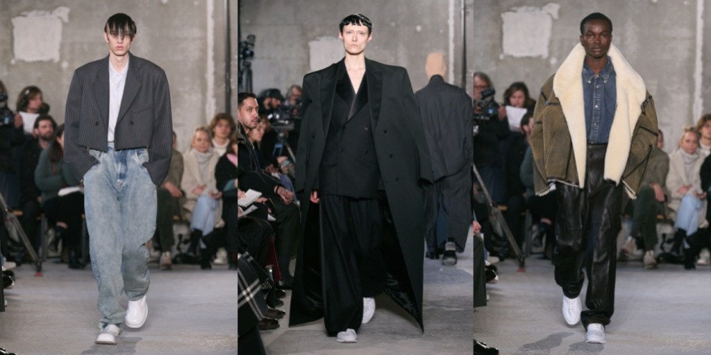 Hed Mayner, the designer from Tel Aviv who captivates the Parisian crowd for a couple seasons now, loves a big silhouette. He is known for blowing up conventional clothes to XXXL size, creating garments that are both timeless and absolutely poetic. In his autumn-winter 2023, Mayner has some of the most desirable pieces of the season: denim cargos pants meet gargantuan wind-jackets, an exquisitely tailored jacket that comes with unisex pinstriped skirt, thick cashmere socks worn over cashmere leggings, beige balaclavas… in general, it’s a more utilitarian vision, one that lets in some non-chalance and spontaneity to the designer’s world. The look featuring a faux-fur coat, white tank-top and leather pants is to die for, too. For the first time, Mayner is dipping into the footwear realm, partnering with Reebok on a set of remixed Classic Leather sneakers. The resulting shape epitomizes the Hed Mayner ethos: the shoes are washed and then flattened by hand to create a loose, lived-in shape, some with a deconstructed tongue that wraps the upper. The off-the-radar designer, gatekept by the industry insiders, is about to blow up.