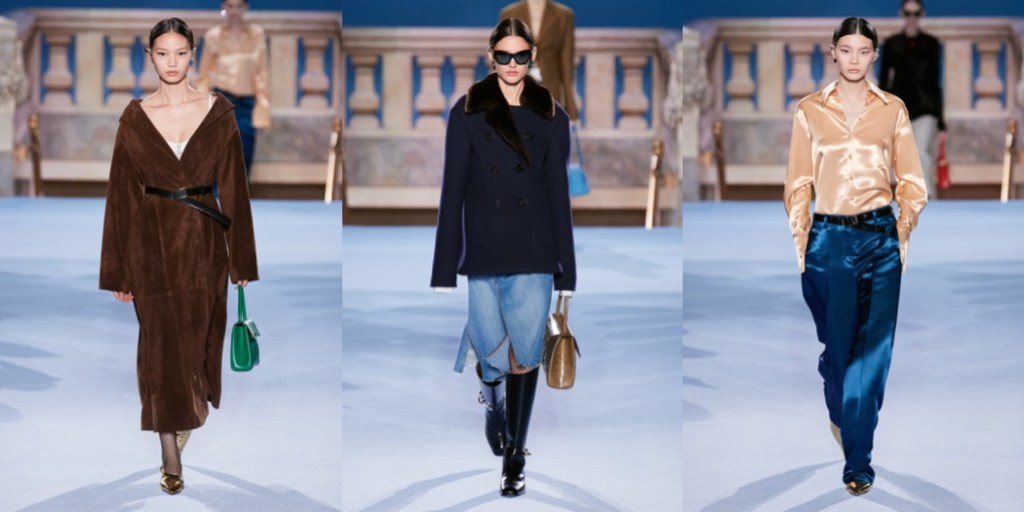 For a couple of seasons now, Tory Burch is delivering some of the most convincing collections in New York. For autumn-winter 2023, Burch is toying with the notion of perfection. “I wanted to challenge the concept of traditional femininity and beauty and twist it,” she said. Why? “I don’t think women want rules anymore.” Burch herself would seem to be chafing against them. Since the pandemic, she’s been talking up Claire McCardell, the American sportswear pioneer who gave women the popover dress 75 years ago, and channeling the freedom of her own early years in the New York of the 1990s with stretchy mix-and-match layers. She was tapping into similar instincts here with sweaters that featured pre-scrunched sleeves and power mesh dresses with built-in padding to accentuate the hips – useful wardrobe shortcuts stripped of old-fashioned proprieties. It’s hard to imagine those padded hips in a Tory Burch collection of five years ago, but even as she’s become more daring, she’s doubled-down on practicality. The building blocks of this collection would look familiar to McCardell. The outerwear in particular was strong; a navy peacoat with a brown shearling collar and a wool tweed coat with what looked like more of that padding at the hips were two of the stars. For evening, Burch’s proposal was to expose the thing that women traditionally hide – their shapewear. This idea worked insofar that the power mesh and satin camisoles were modeled on mid-century styles, when indeed those unmentionables were kept firmly under wraps. Women today, of course, expose their shapewear every time they leave the house in a job bra and performance leggings. But with their stitched floral appliqués and undone hooks and eyes they did prove Burch’s point: that women are perfectly imperfect and vulnerability can be their strength.