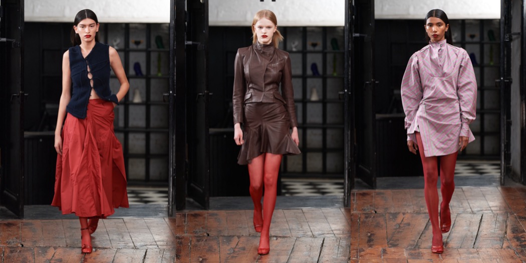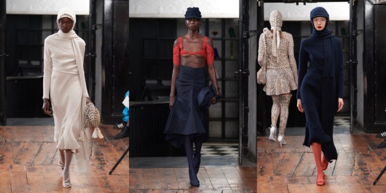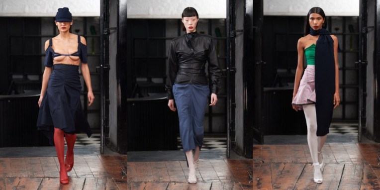 Talia Byre is a designer worth keeping on your fashion radar. For autumn-winter 2023, the London-based designer found inspiration in the leading women of films like The Graduate and Funny Girl, and wanted to celebrate the ‘anti-hero’ with her latest offering. “The person I’m designing for is brash, greedy, selfish; all of what’s perceived as the worst traits to have,” she said in a preview. “But what’s great about them is that they’re also strong and independent – it’s their way of saying a big ‘fuck you’ to society.” The collection explored the sort of wardrobe that an anti-hero figure would aspire to own. There was a duality of toughness while retaining sensuality, whether in the form of screen-printed leopard patterns on wool and cashmere pieces, or figure-hugging maxi dresses in black and dark cherry brown. “This season, sexiness is expressed more subtly,” Byre said. “However, a look can unravel into more daring silhouettes with the undoing of a single button.” The tailored coats were particularly strong – one in navy wool with a dangerously high slit up the back, and another featuring a hood constructed from waterproof technical fabric. A cotton poplin shirt dress with woven stripes, a dramatically cinched waist-line, and voluminous sleeves was also worth noting.