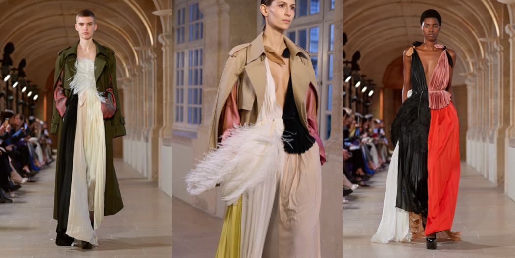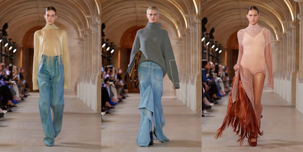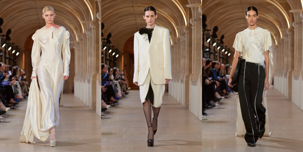The autumn-winter 2023 collection was Victoria Beckham‘s most daring offering, ever. At first, it overwhelms with its chaos, and there are moments when you wonder whether each look is a start of a separate collection. But when you realize the collection is inspired with “Grey Gardens”, things start to get clear. It gets chaotic-good. Beckham’s show invitation showed a portrait of Drew Barrymore, reprising her role as Little Edie in the mentioned cult movie. She’s a friend, from when Beckham and her family lived in L.A. “It’s not the first time I’ve talked about ‘Grey Gardens’,” said the designer. “But I don’t want to take it literally. It’s more about being a bit more eclectic, having fun; almost like a little girl playing dress-up.” Checking back to what she did last season, it read as an evolution of the elongated silhouettes she was establishing then, with some gutsier demi-deconstructed tailoring strengthening the line-up. Anyone who still associates Victoria with business-perfect dresses might be surprised, though. There was none of the short-and sucked-in left here: instead, there was a much more relaxed and generously inclusive approach to shape, generally a modernized version of 1930s-ish silhouettes. So too with the tailoring – Beckham’s interpretation of the wide-shouldered jacket, optionally worn as a dress, looked spot on for the season. She didn’t mention the word ‘surrealist’, but that’s how a couple of her dresses happened to read, especially when styled with trimmings of acrylic hair extensions, inspired, she said, by work of artist Solange Pessoa. Who knows, maybe Victoria Beckham will turn into a designer known for free-spirited non-chalance?