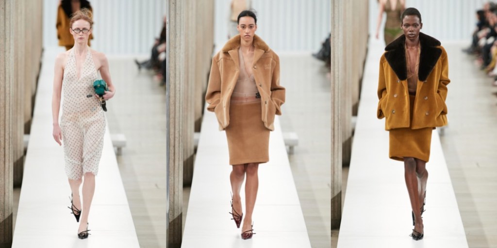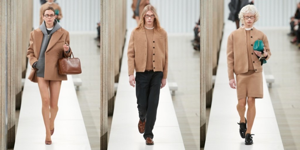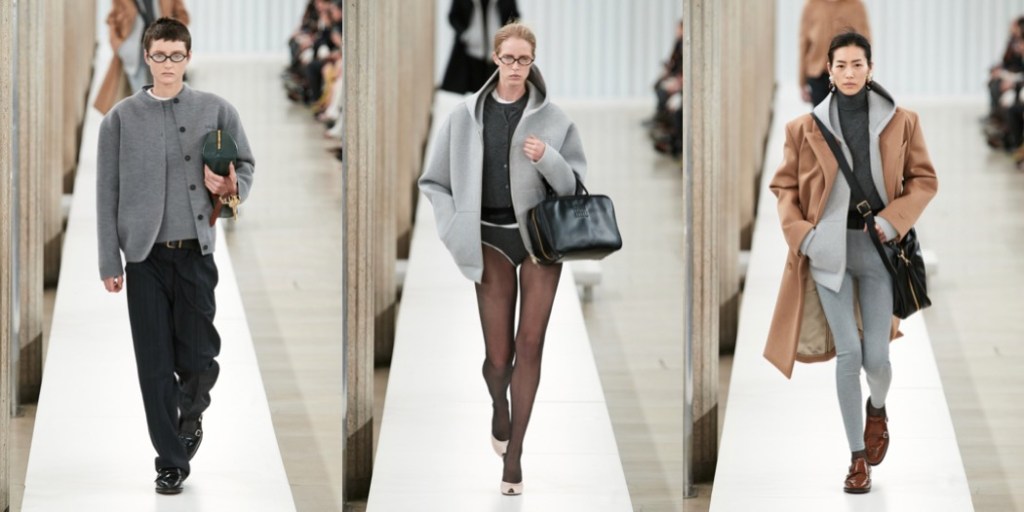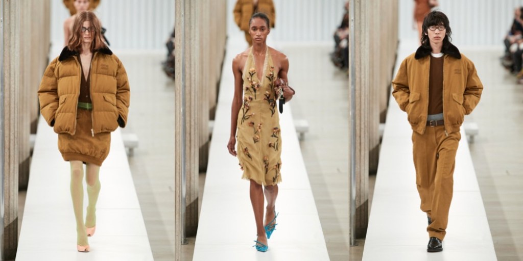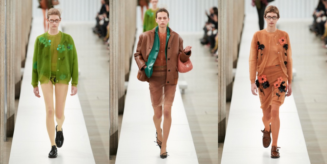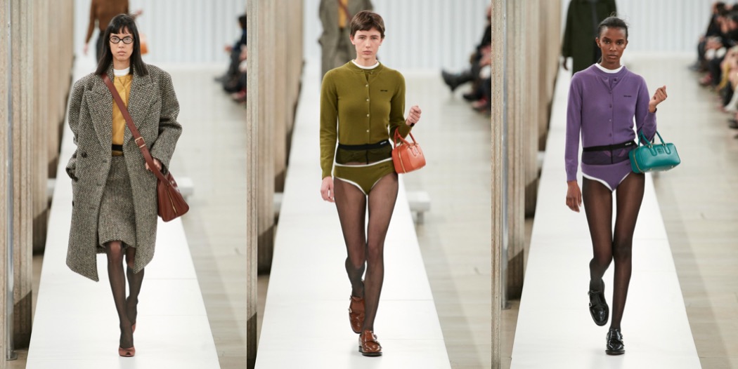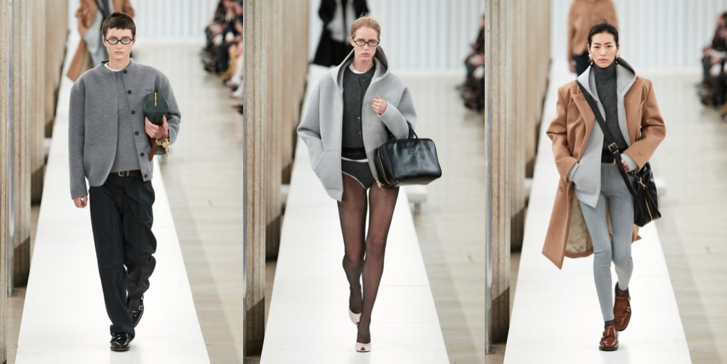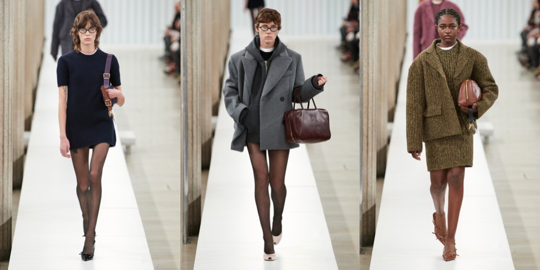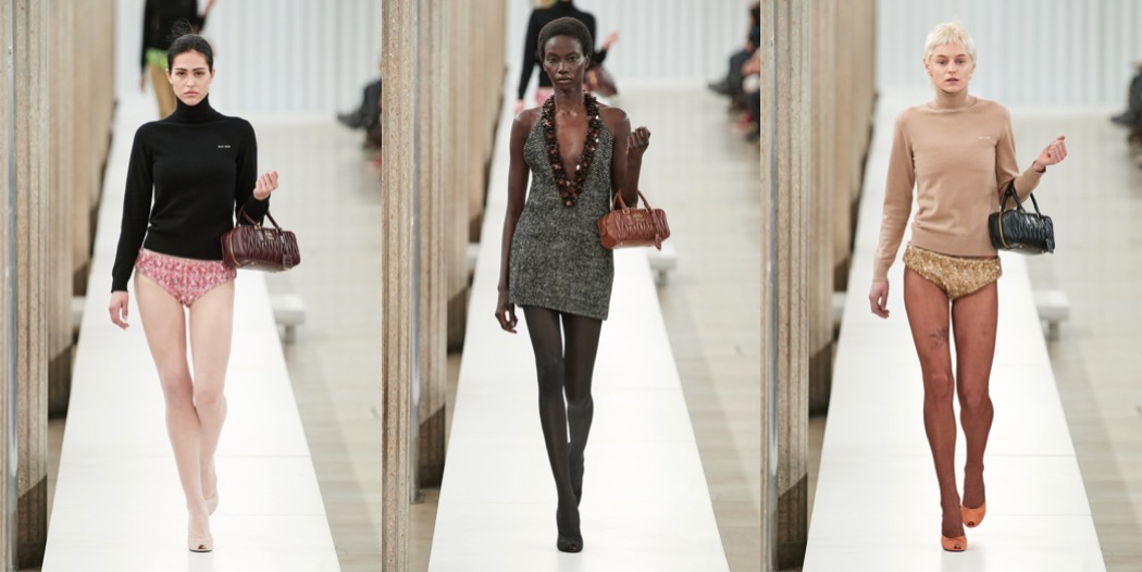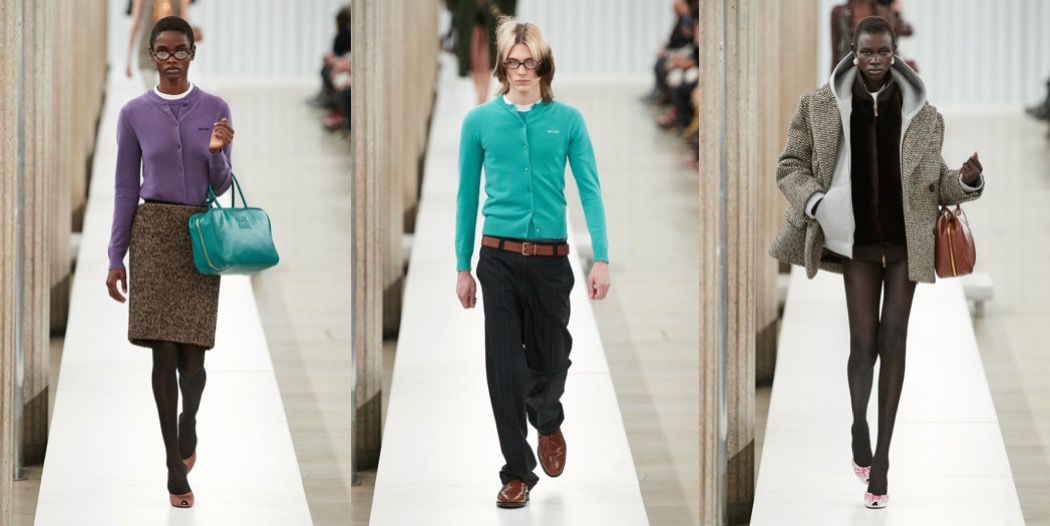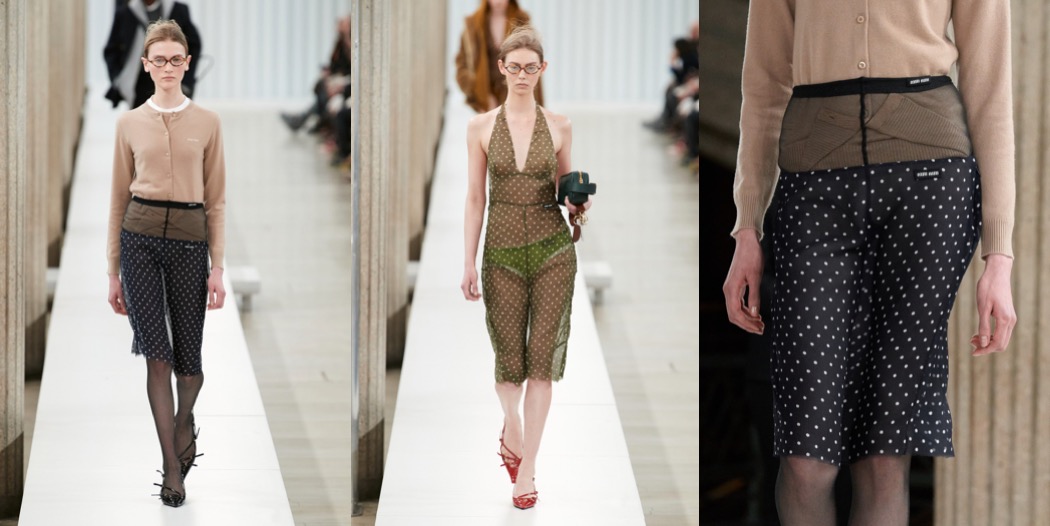 Miu Miu shut down Paris Fashion Week with a bang. Or even the entire season! This was a remarkable collection that felt desirable and intriguing, sexy and perversely chic, absolutely timeless and completely relevant. Miuccia Prada (with Lotta Volkova’s brilliant styling support) satisfied all the possible needs of a Miu Miu girl-slash-woman. The show was opened by the modern-day indie-film leading-actress Mia Goth, who wore a prim grey cardigan and polka-dot-printed skirt, all ladylike in kitten-heel sling-backs and a matching handbag draped over her arm. Her hair was kind of messy, and her tights were pulled up over her top. That’s the look that will define this season in fashion. To a frantic jazz soundtrack, other models wore ensembles that had a sense of spontaneous, impulsive layering and romantic urgency. Prada wrapped an infectious sentiment of youth into a Miu Miu collection that read like the ultimate shopping list for the autumn 2023 wardrobe. Emma Corrin’s finale look – a beige turtleneck and heavily embellished, gold panties – represented the candid, youthful, independent persona Miuccia Prada is creating for. The message was reinforced by the genderless philosophy Prada has been introducing at Miu Miu by way of male casting. With its ironic sense of humor, the Miu Miu collection uplifted its audience, because it cut a contrast to a season that’s reflected a less uplifting reality. With that in mind, the reduced Miu Miu silhouette and quiet colors also evoked a wartime sensibility. “A little serious,” Prada said. “I like to embrace that in this moment. Maybe I’m too careful about what’s happening around us, but I can’t leave fashion like some place of nonsense. There’s some excitement and sexiness there,” she paused. “But basically, I think we have to dress for thinking. And for starting fresh.” Oui, oui, oui!