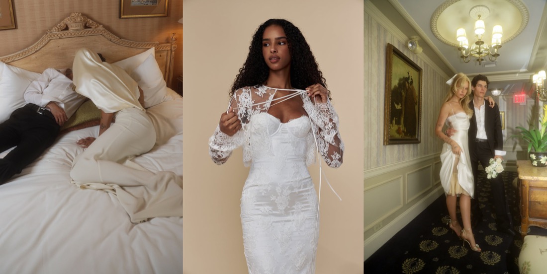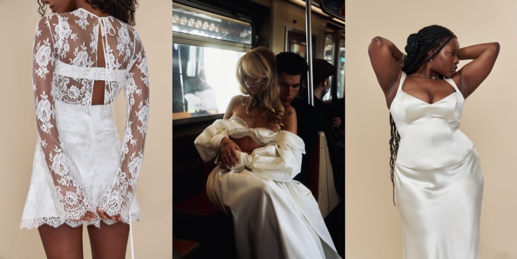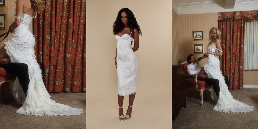Mirror Palais is a sultry-slash-sustainable pre-order brand founded in 2019 by Marcelo Gaia. After working for almost a decade as a stylist, Gaia decided to create his own label – with the mission to celebrate the confident women who inspire him. His sumptuous collections feel like a nod to vintage silhouettes – think John Galliano’s 1990s bias-cut silk dreses – updated to fit the needs of the modern woman. The brand made an astounding impression on the industry with its New York Fashion Week show back in September, playing with several themes such as concealment and revelation. Born to immigrant parents from Brazil, Gaia’s years of youth consisted of humble beginnings, and a strict household. Among many brands, Mirror Palais is especially praised for its true celebration of Spanish culture as opposed to the appropriation of it. Gaia designs pieces with inspiration such as the Latino tradition of wearing white for good luck, the Huipil for its ruffles and silhouette, and the use of lace typically seen in a Mantilla. Overall, Mirror Palais is an amazing celebration of the female form and Spanish culture, designing timeless and unique pieces. Every Mirror Palais garment is designed and made in New York with the intention of bringing fair wages and craftsmanship to the forefront of the fashion conversation. So, when you buy Mirror Palais, you’re supporting a modicum of the garment district ecosystem. Here’s the brand’s latest diaphanous bridal collection…