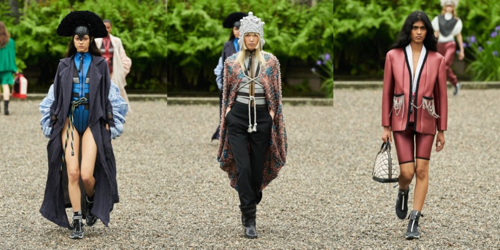 As a vivid nay-sayer of Nicolas Ghesquière‘s recent work at Louis Vuitton, I will admit it: the resort 2024 collection is BRILLIANT. It’s Ghesquière fashion – intelligent, quirky, high-and-low, time-proof, self-referential – that I love and truly missed for the last couple of years. His resort show yesterday (nearly) happened at the terraced gardens of Isola Bella, a tiny private island in Lake Maggiore that has belonged to Italy’s Borromeo clan for 500 years. Ferrying the likes of Catherine Deneuve, Oprah Winfrey, and Cate Blanchett, plus 1,000 or so other guests to the spectacular venue was quite the feat, but not even the powerhouse that is Louis Vuitton can change the weather. The rain was coming down in sheets, and plans for a sunset show and after-party en plein air had to be scrapped, though an earlier show was staged to create these images. The lake produces its own climate and Ghesquière was much inspired by the watery surroundings. “We started with the idea that the girls were coming from the water, like mermaids of the lake, and they’re transforming to something else,” he said. The explanation tied together a collection of many distinct proposals. Ghesquière tends to think freer and looser when he’s untethered from Paris, but this sci-fi fantasy had the dreaminess of a fairytale. It started with scuba gear featuring fin-like collars and water droplet embellishments. A pair of diving jackets were elaborately printed in a way that conjured both Hokusai waves and the creatures that might be living underneath them. He mixed neoprene tank suits with lavish courtly robes, and paired mermaid-scale sequin skirts with naval jackets. The baroque headgear was custom-made for the show by an atelier in Rome that works for the opera and movies. This was the French house’s first-ever show in Italy (a timely choice given its new CEO Pietro Beccari is Italian) and Ghesquière wanted to pay tribute to the country’s patrimony of craft. Then the mermaids found their sea legs. His everyday pieces included brushed cashmere sweaters in soft pastels that he described as Italian colors, button-downs and “jeans” in embroidered lace and sumptuous brocades, and classically cut coats that topped sequined floral dresses inspired by the island’s plantings.