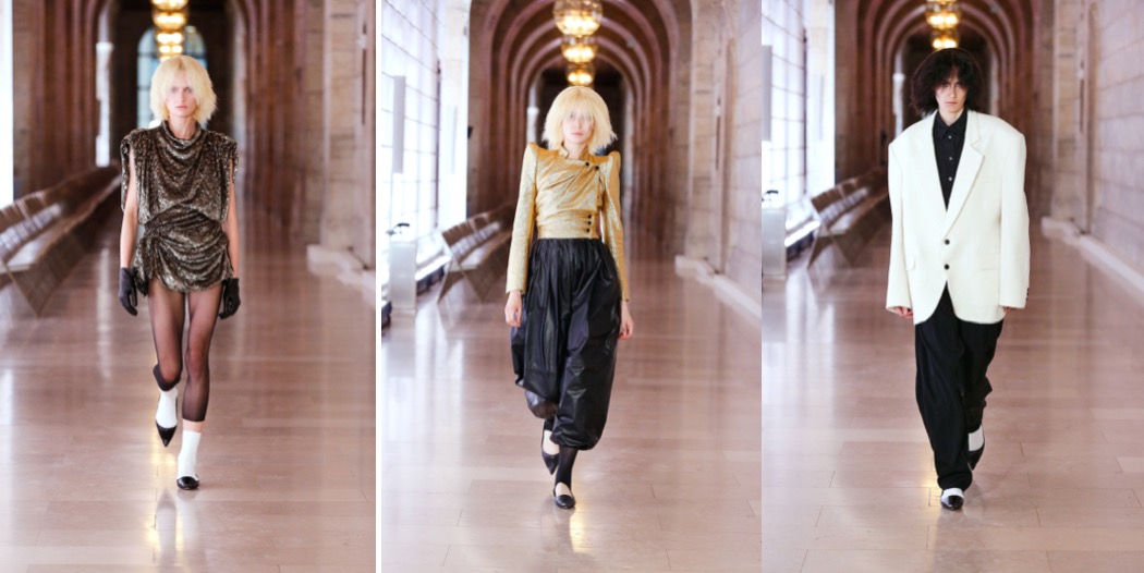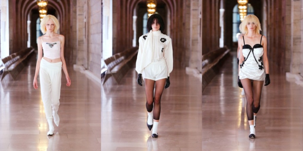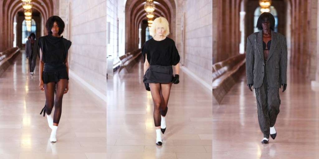 The 29 models did two finale laps (which took about three minutes) and then Marc Jacobs was out taking his bow. The defiant scarcity and razor-like sharpness of the designer’ latest fashion show is just so refreshing in times of endless fashion weeks and flashy presentations – where the clothes are no longer the main focus. Jacobs’ clothes – some of his most powerful designs in seasons, less couture-ish, more ready-to-wear-ish – themselves looked indebted to the 1980s, the last analog decade before the internet went wide, and the one when Jacobs came of age in New York City. But the show notes were written by the newly launched Open AI Chat GPT in a noticeably bland, monotonous style. Sample line: “The Marc Jacobs fashion show mesmerized its audience with an awe-inspiring fusion of masculine tailoring and feminine elegance.” The surprise of the experience, a rewriting of the show rules, made you wonder if Jacobs is onto something. As brief as they were, the back and forth of the two finale walks colored in the broad strokes of the show notes. The models’ cyberpunk bowl cuts conjured Pris, Daryl Hannah’s pleasure model replicant from Blade Runner, which seemed like another clue about what Jacobs was up to. They wore the masculine tailoring the Chat GPT described with overscale shoulders and high-waisted deeply pleated pants, as well as femme minidresses that showed off lots of leg–black stockings sliced at the calves over white ankle socks, and pointy-toed flats. The black-and-white palette and the body-conscious attitude of the little nipped waist dresses made the collection seem more essential, more New York, more… Marc Jacobs. To sum up: the designer’s last few collections were true eye-candies, but the most recent one is a true triumph.