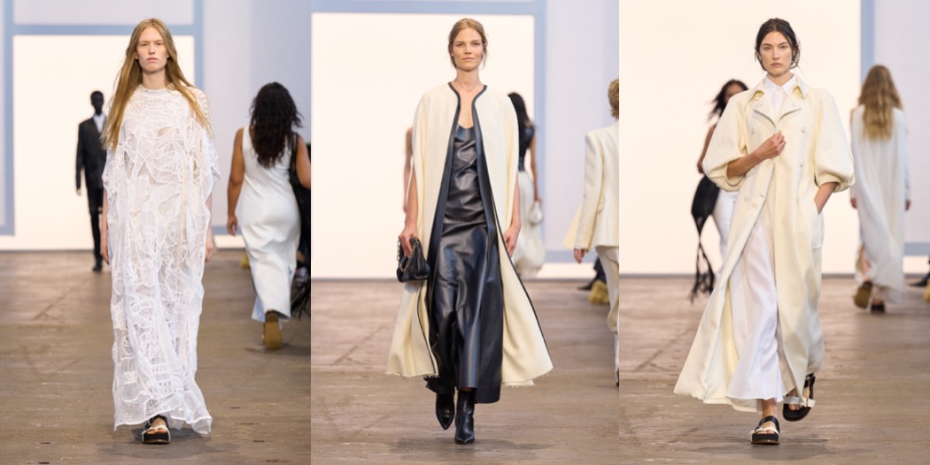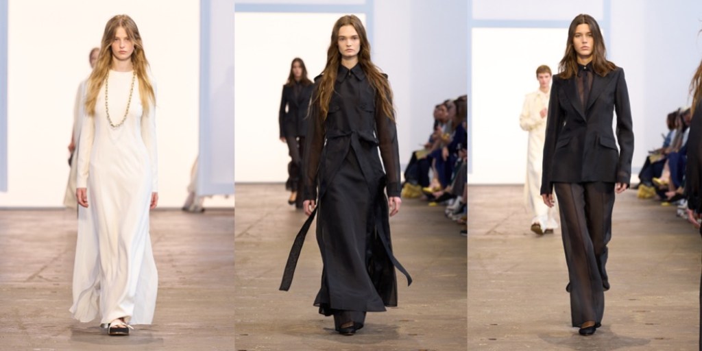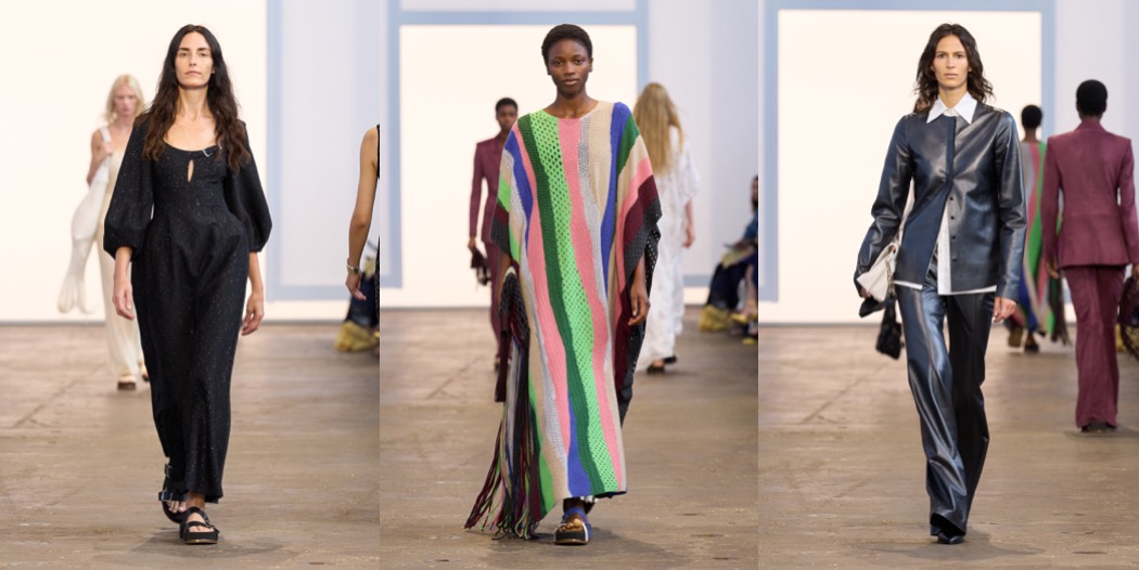 For spring-summer 2024, Gabriela Hearst was talking about the Druids and quoted a wicca handbook. But the designer’s clothes really don’t need that much background and explanation. The collection’s highlight dress, made from black cashmere linen gauze, had the long draped sleeves of a high priestess robe. Witchy lengths and layers reappeared all over the offering, but there was a contemporary feel to them. The designer cut a couple of very elegant pantsuits, of course in responsibly sourced or deadstock materials. As usual, she’s also passionate about craft. There was an extraordinary white poncho and dress in this collection whose elaborate patterns were hand-crocheted and hand-macraméd by Bolivian artisans after a painting by the Haitian artist Levoy Exil, whose work draws inspiration from voodoo. The poncho took over 1,500 hours to complete. Beaded mesh dresses, while simpler, require their own time-consuming steps; to make the yarn, the glass beads are first strung on silk, which is then spun with cashmere. Heart will show her last collection for Chloé later this month; that match just didn’t click, even with the designer’s best intentions. At least now she will have more space for perfecting her vision at her New York-based label.
