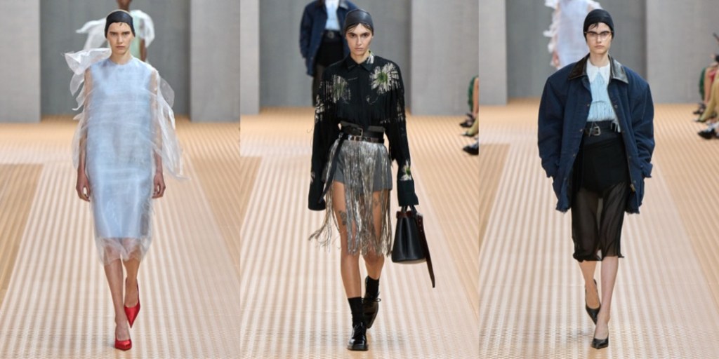 Until Prada‘s show yesterday, I feel like I’ve been in a coma this fashion month (maybe for a few very rare exceptions). Miuccia Prada and Raf Simons proved they are in their top game with the spring-summer 2024 collection, an offering charged with so much feeling, meaning and intelligence. As Miuccia said, it’s an ode to “culture about clothing“. Perhaps something that’s on verge of extinction in times of clothes made for Instagram and TikTok. This was also a very earnest line-up focused on clothes. “I got tired talking about ideas – let’s talk about clothes.” Aren’t all runway shows about clothes? Well, yes, but as Raf Simons went on to explain, “craft isn’t something that gets talked about a lot at Prada, at least not as much as at other houses. We wanted to show what we could do.” It wasn’t a matter of how many hours it took to embroider this and how many petites mains were involved in making that. “That’s irrelevant,” he said with a wave of his hand. “The figuring out if it can be done” was the part that got him and Prada going. Two techniques, in particular, got special mention from Simons. The first was the printed fringe they used on floral shirts that gave the individual blooms a shifting depth. And the second was the long skeins of metal fringe used for skirts “built like jewelry.” They’re conversation starters, for sure. But that’s just the beginning of this delightful menu.