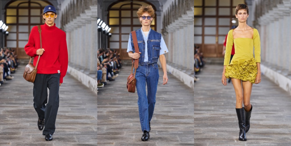 At Bally, a quiet revolution is upon. Simone Bellotti is the new design director at the Swiss brand, replacing the brief stint of Rhuigi Villaseñor, who left abruptly in May. An experienced designer, Bellotti spent 16 years at Gucci under Frida Giannini and Alessandro Michele, and is now tasked with bringing the dusty brand into new territory. His debut is promising, and much more convincing than the other Milanese debut – Sabato De Sarno at Gucci – this season. For his spring-summer 2024, Simone mined the label’s rich archive “that holds incredible treasures of made in Switzerland craftsmanship”. Bellotti was drawn to explore a mysterious, expressive and subversive flip side of the spirit of the country’s culture. He came across the story of Monte Verità, a utopian community of free, creative souls founded in Ascona at the turn of the 20th century. A haven for spiritual regeneration and artistic and mystical practices, it was visited by famous intellectuals and artists – Carl Jung, Herman Hesse, Rudolf Steiner, Paul Klee and many others sojourned in the retreat, basking in the healing atmosphere of the alpine landscape. The collection he sent out was a fine, sensible exercise in balancing the contradictions between practicality and imagination, elegant design and subtly humorous details. The result: A.P.C., but luxe. A niche that was unfilled in Milan for years.