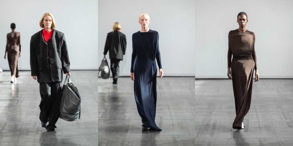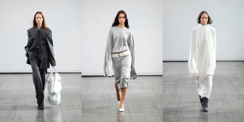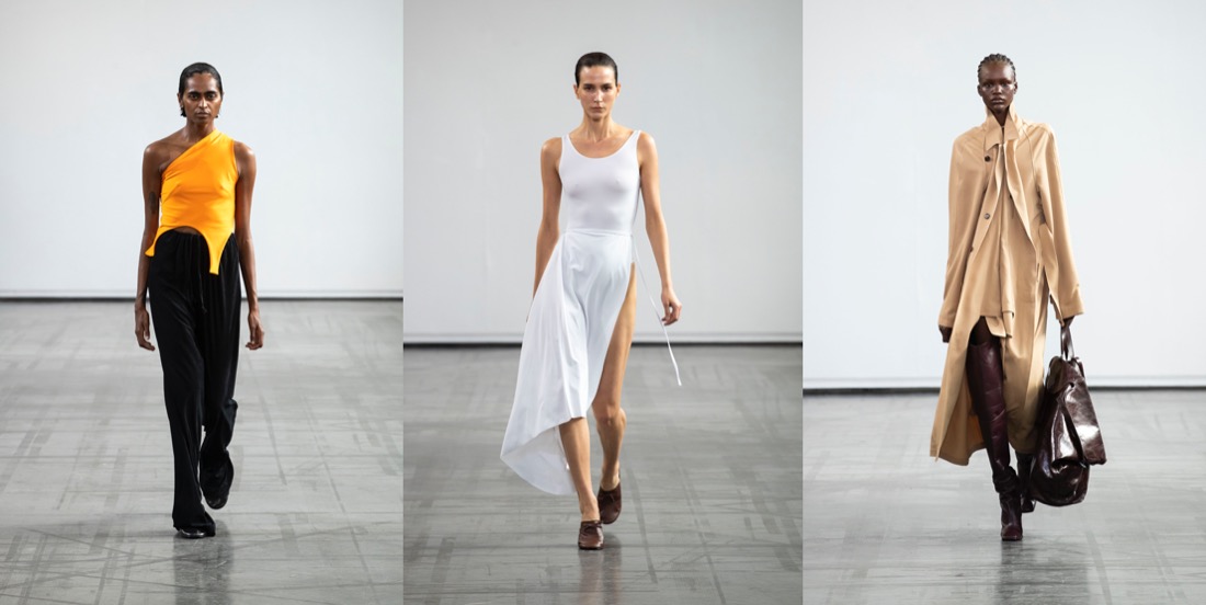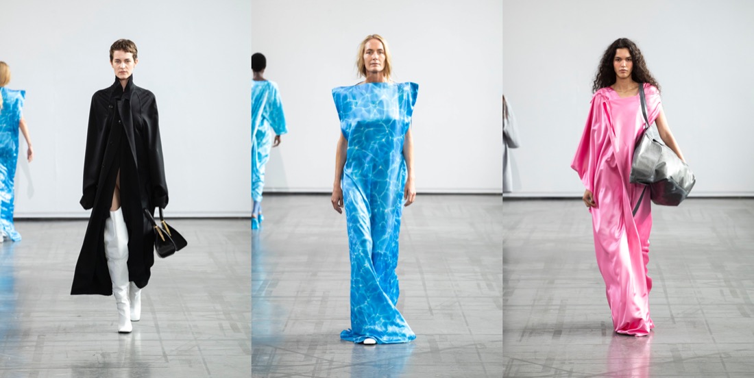 Marie Adam-Leenaerdt is on everybody’s lips in Paris. Although considered a newcomer by the industry, she in fact was a ready-to-wear designer at Demna’s Balenciaga for a couple of seasons. Spring-summer 2024 collection comes in perfect continuity with her previous outing, deliberately designed to complement the ideas that are at core of the brand. The raw, intense, dazzling light of the summer sun at its zenith is used in a quasi-extreme vision that aims to question seasonality and obsolescence through a counterpoint and paradox. In the same spirit, Marie Adam-Leenaerdt’s garments multiply their uses, with systems of ties, fastenings and buttonholes. They can be worn as desired, far away or close to the body, and we appropriate them to create our own personal wardrobe, our own collection. Objects stripped of their initial function are adorned with dress codes, and hybridization is a given: Marie Adam-Leenaerdt’s signature. “Create the surprise“, she says. “Thus, the portable beach hut becomes, almost literally, a dress, in the same referential fabric – a conceptual garment“, the designer enigmatically says. The collection is enriched by some Margiela-isms (like at Vaquera; it seems that this Paris Fashion Week will be big on references to the Belgian designer): a trompe-l’oeil stiletto heel, pool and sand prints, and over-sized, raw denim.