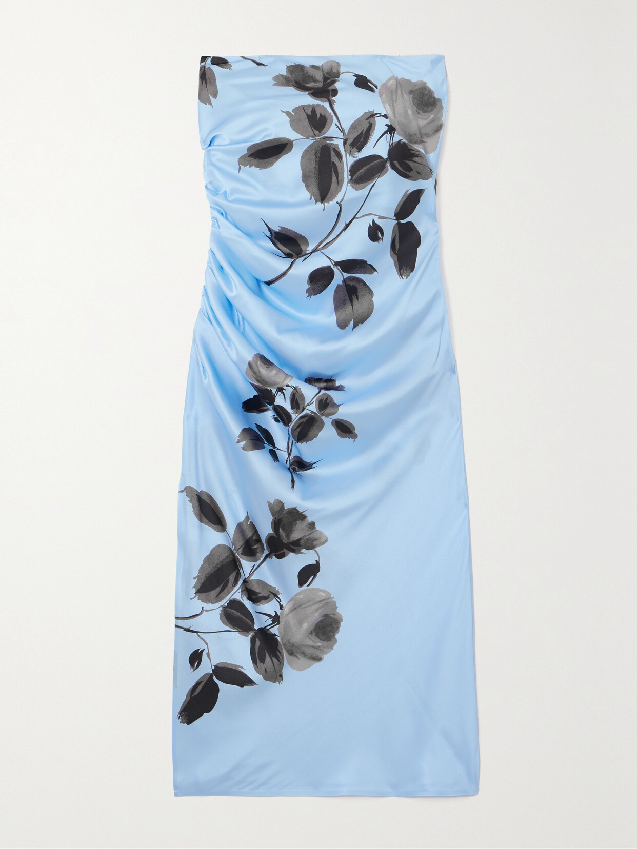 Gathered Cutout Floral-print Silk And Wool-blend Top