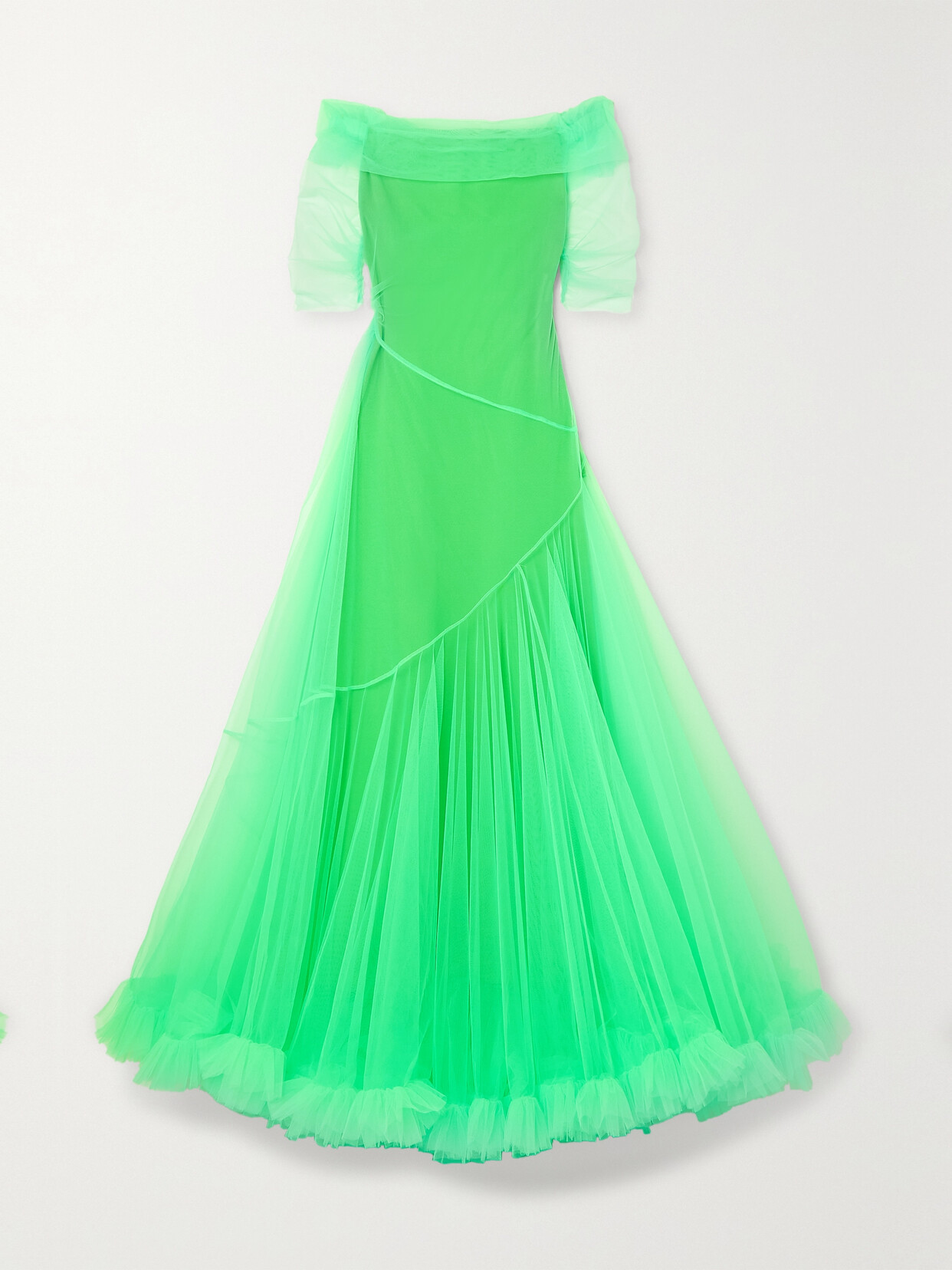 Dexa Off-the-shoulder Ruffled Neon Tulle Gown