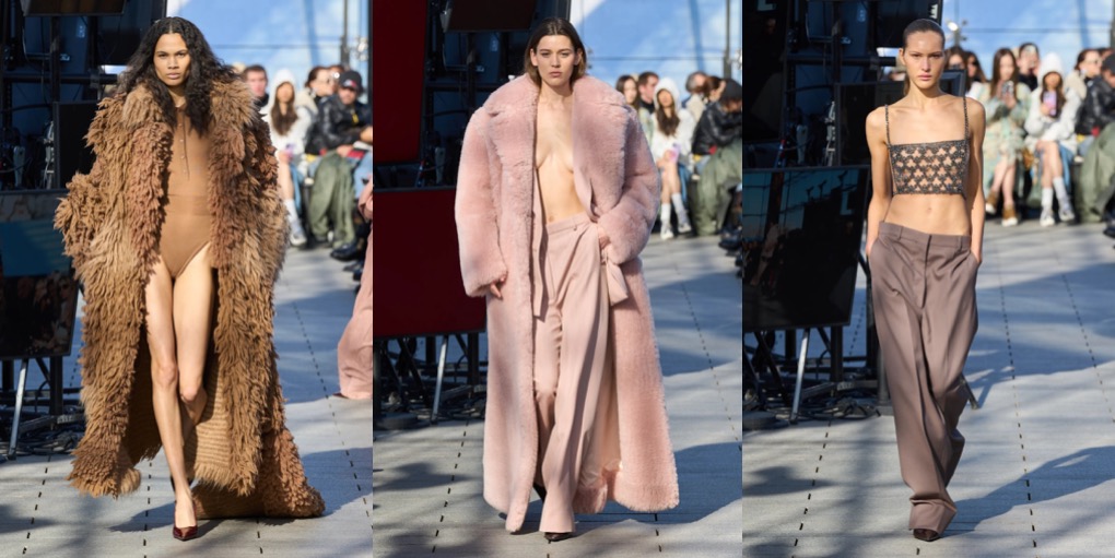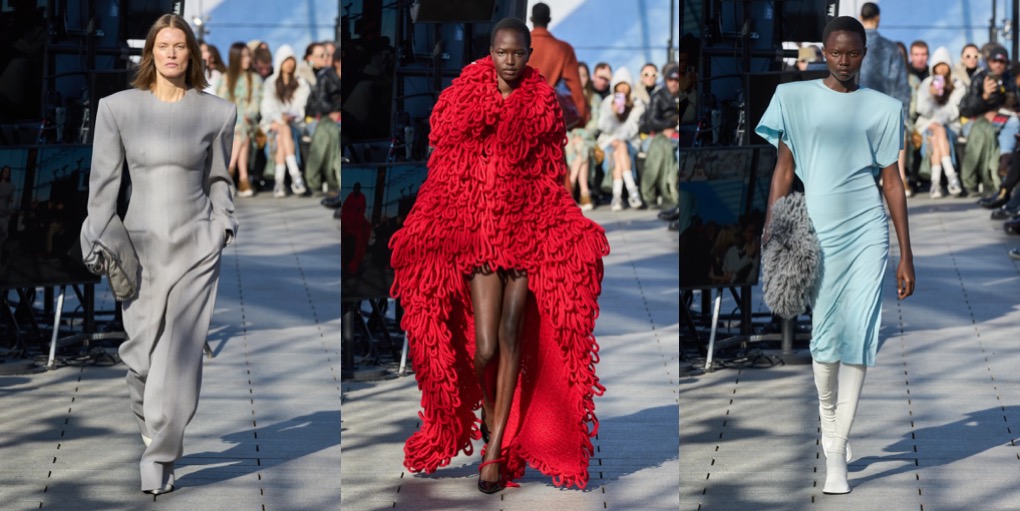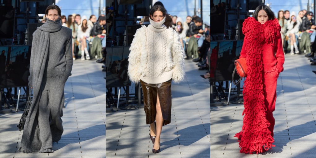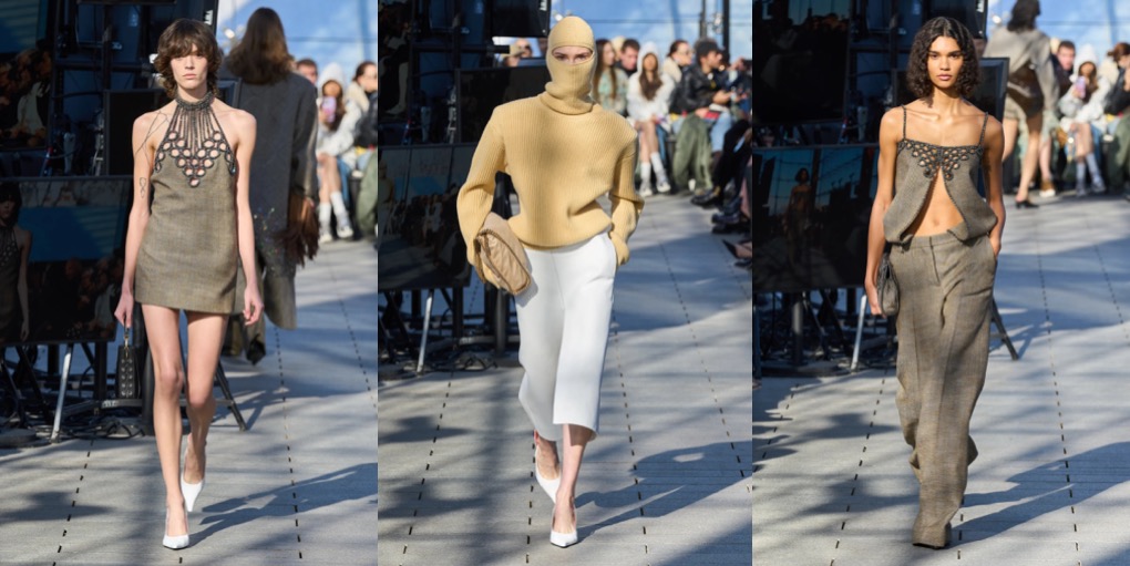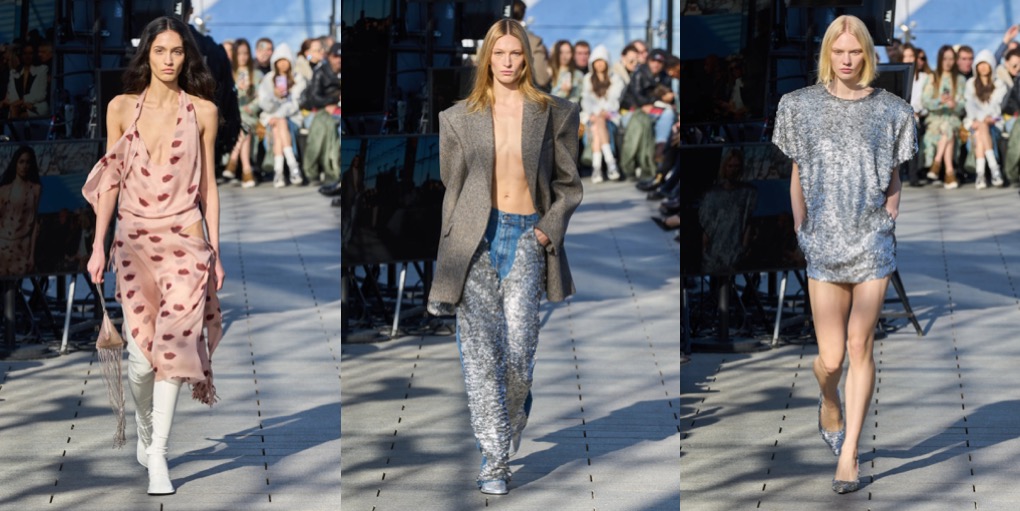 The Stella McCartney show began with a video message from Mother Earth, a manifesto read by the actor Olivia Colman. It went: “Show me you love me / It’s about fucking time“. If somebody is still skeptic about global warming, just see how early spring has sprung in Paris. McCartney, a pioneer sustainability activist in this industry, wondered this season how does a woman, especially if she’s a mother, not get depressed about it all? McCartney is preternaturally upbeat and that refusal to see the cup half empty infuses her collections. Though her tailored jackets are cut with power shoulders that could command a board meeting, she styles and sends them down the runway sans shirts or underpinnings. On the more laid-back side of things, slouchy matching knit sets are accessorized with loopy yarn boas long enough to dust the floor with. Other cases in point this season included the tailoring with cut-crystal detailing in the style of a Chloé collection McCartney designed circa spring 2000 and jeans with built-in eco-leather chaps accompanied by a tank printed with the ending refrain of the Mother Earth manifesto. That much of this had been constructed with responsibly sourced or recycled materials and vegan alternatives to animal products is another reason to feel good in McCartney’s clothes.
